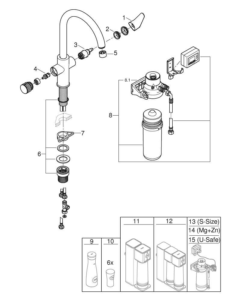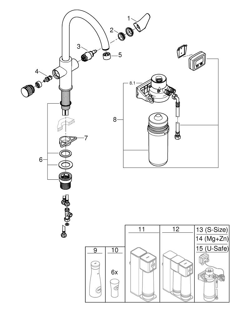 Pour une manière abordable d'obtenir de l'eau potable pure et filtrée directement du robinet de cuisine – surtout dans les zones avec de l'eau douce – utilisez le kit de démarrage GROHE Blue Pure StartCurve avec filtre à charbon actif