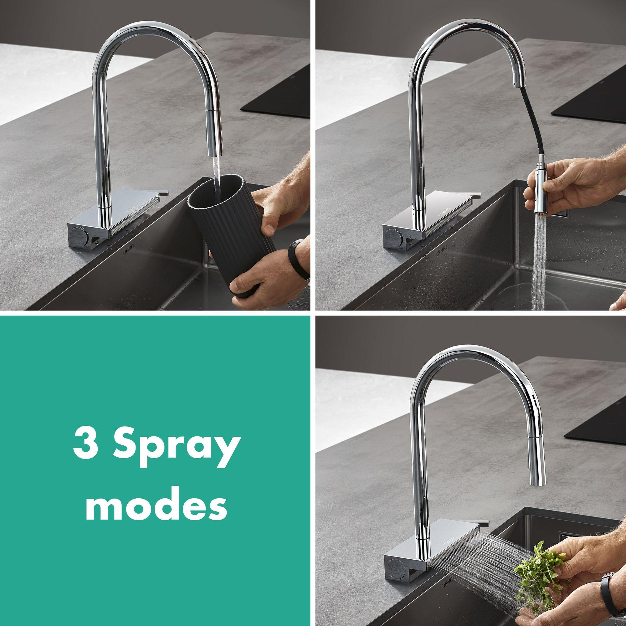 Hansgrohe Aquno 1-gr robinet de cuisine 170mm avec douchette extractible 3 jets chromé