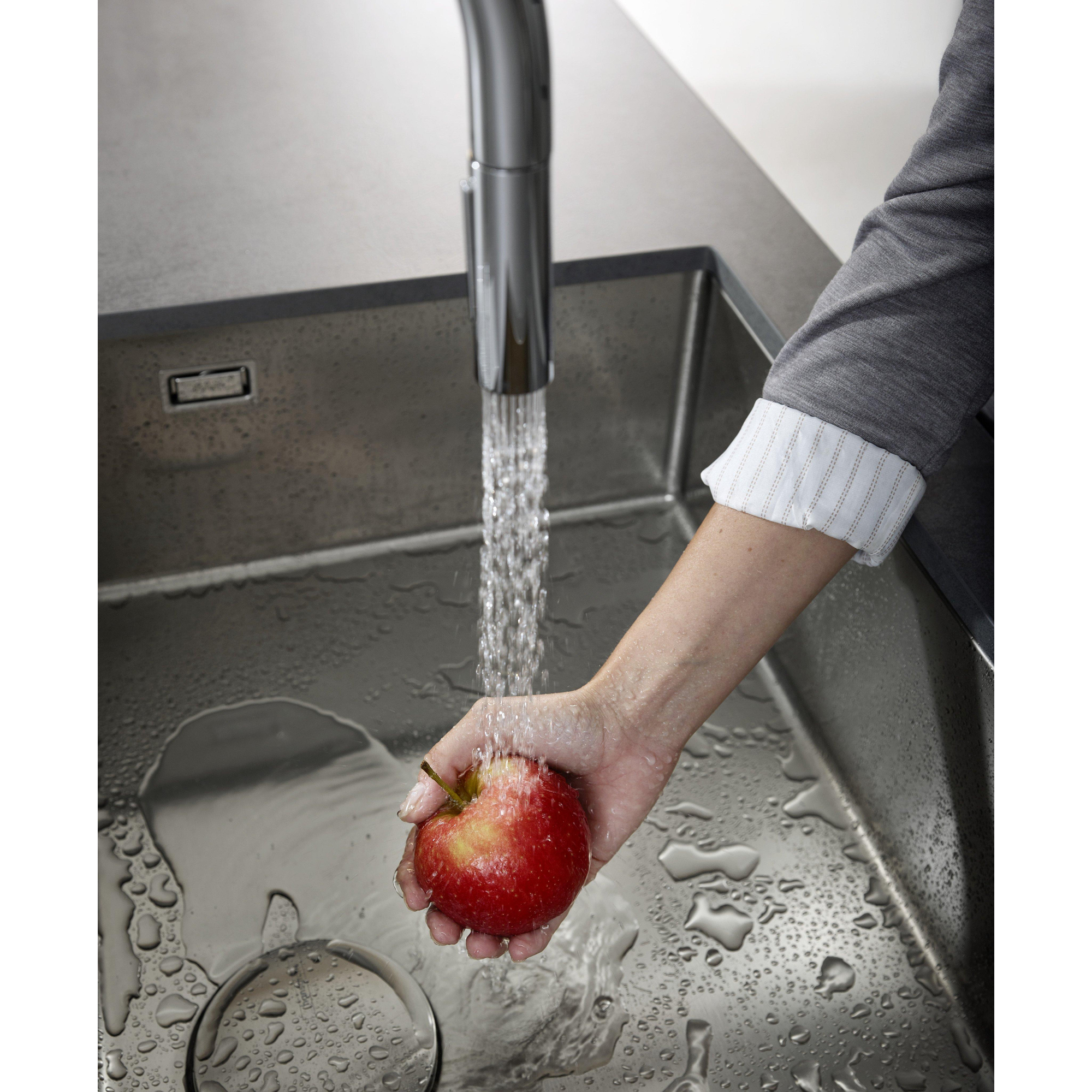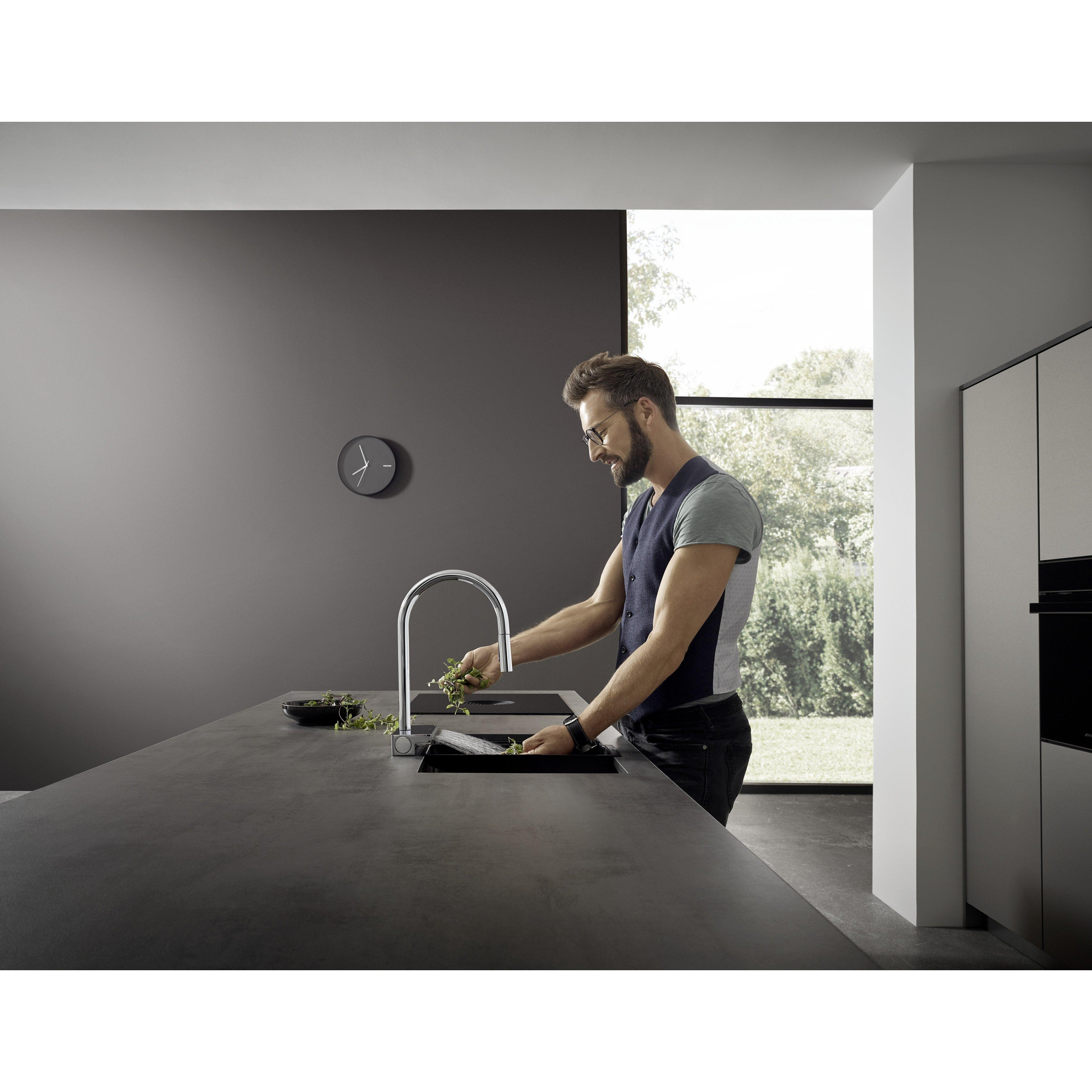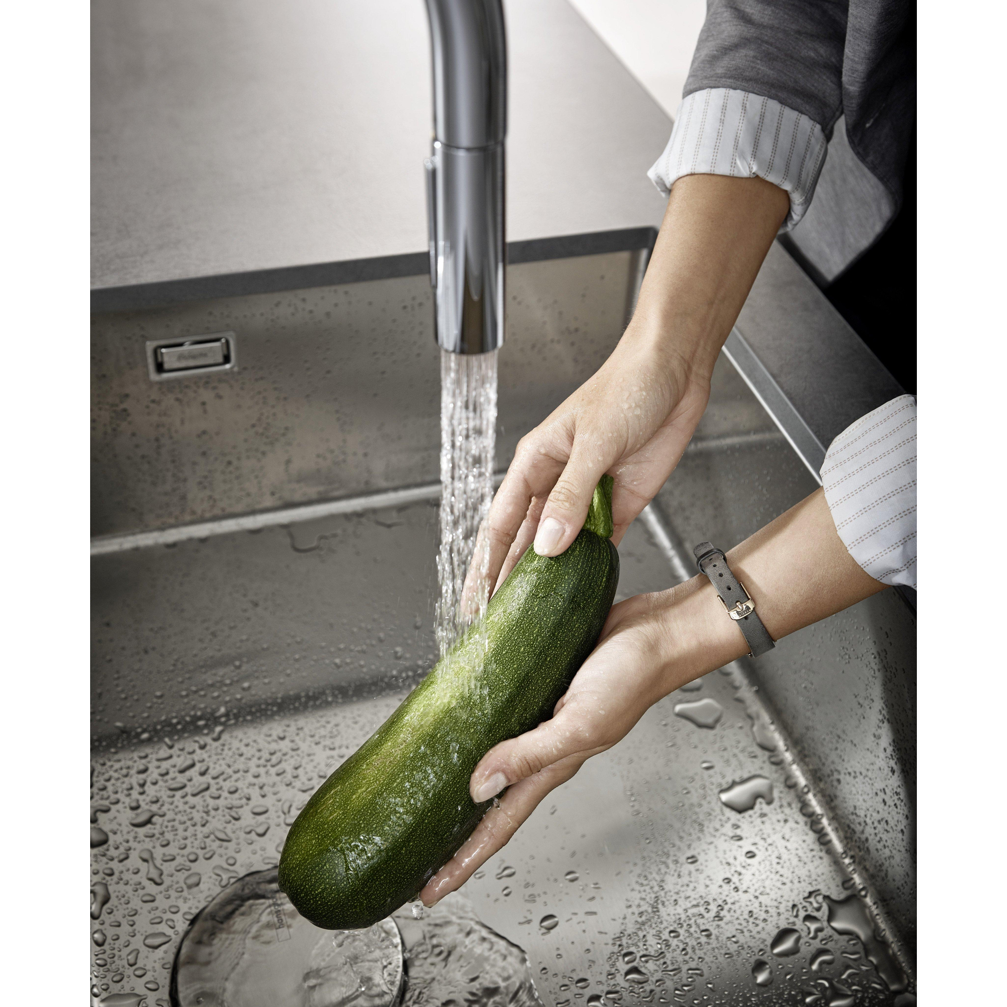 Ce robinet est un véritable point focal dans votre cuisine. La finition chromée brillante offre un aspect moderne et luxueux qui s'adapte sans effort à divers styles d'intérieur. Le design épuré et courbé apporte une touche élégante sans compromettre la fonctionnalité. Grâce aux détails subtils, comme le support magnétique pour la douchette extractible, tout paraît soigné et ordonné. Vous ajoutez ainsi non seulement un élément pratique, mais aussi un accent stylé qui élève votre cuisine à un niveau supérieur.