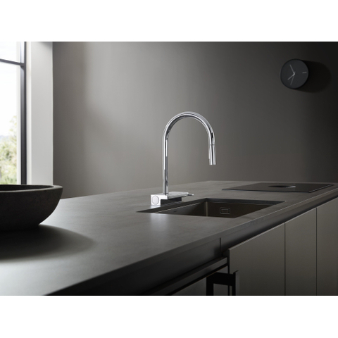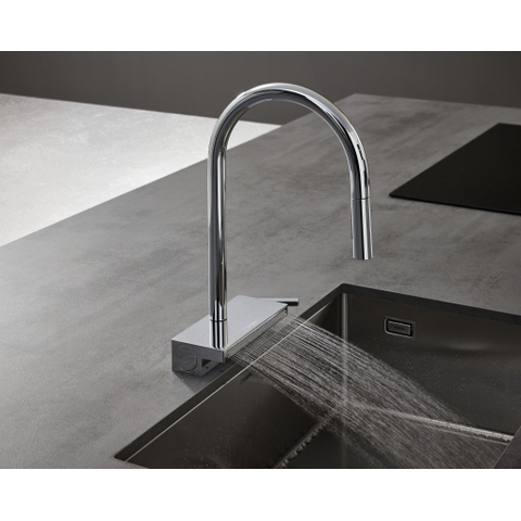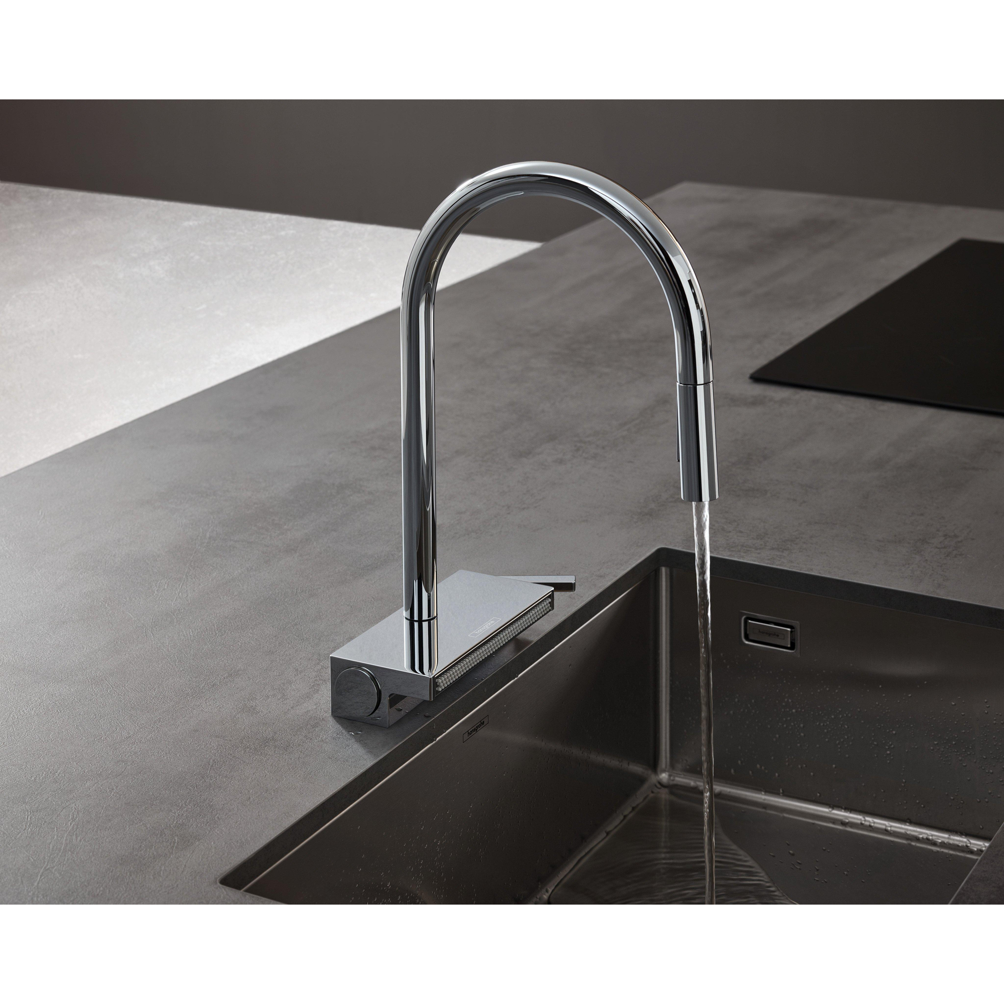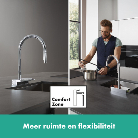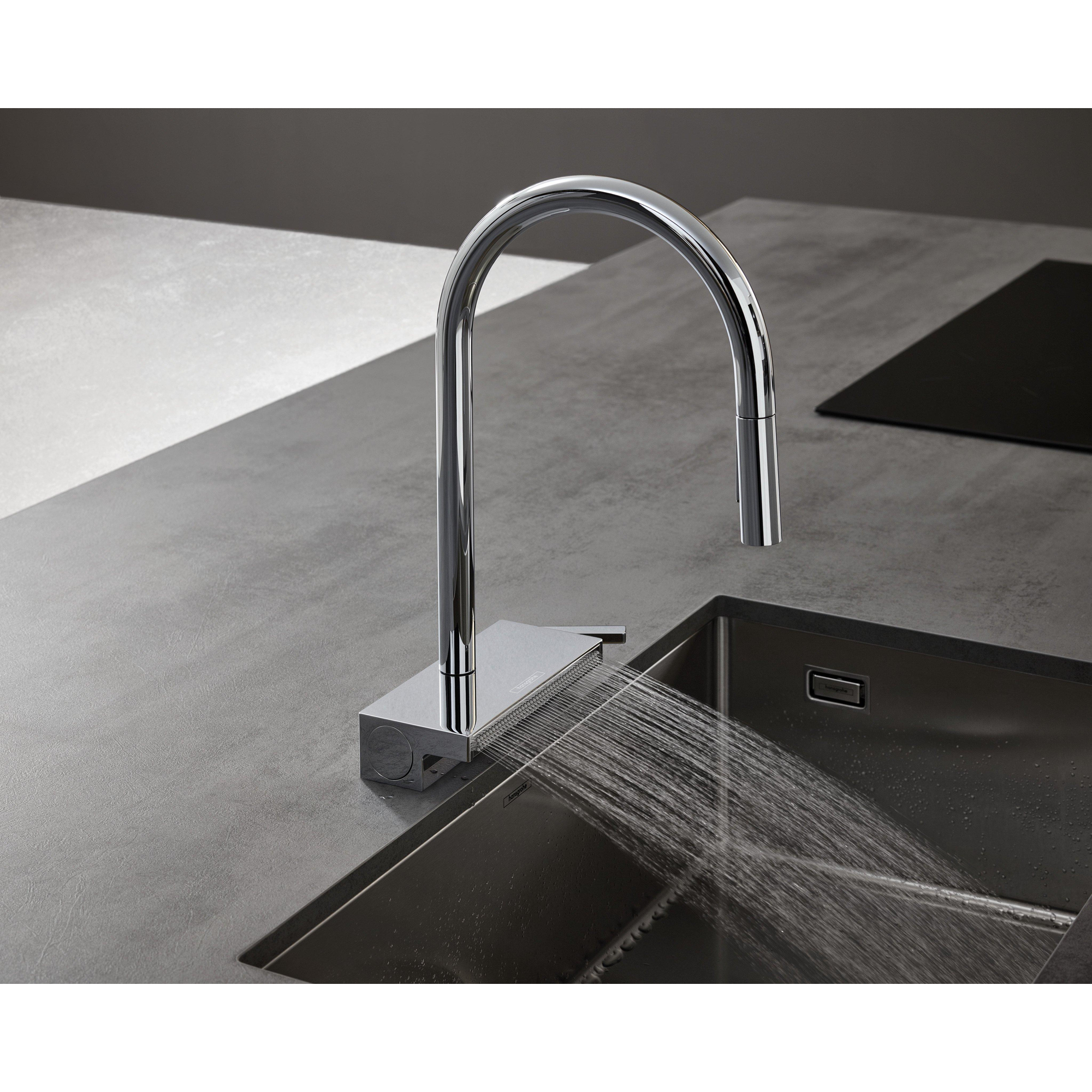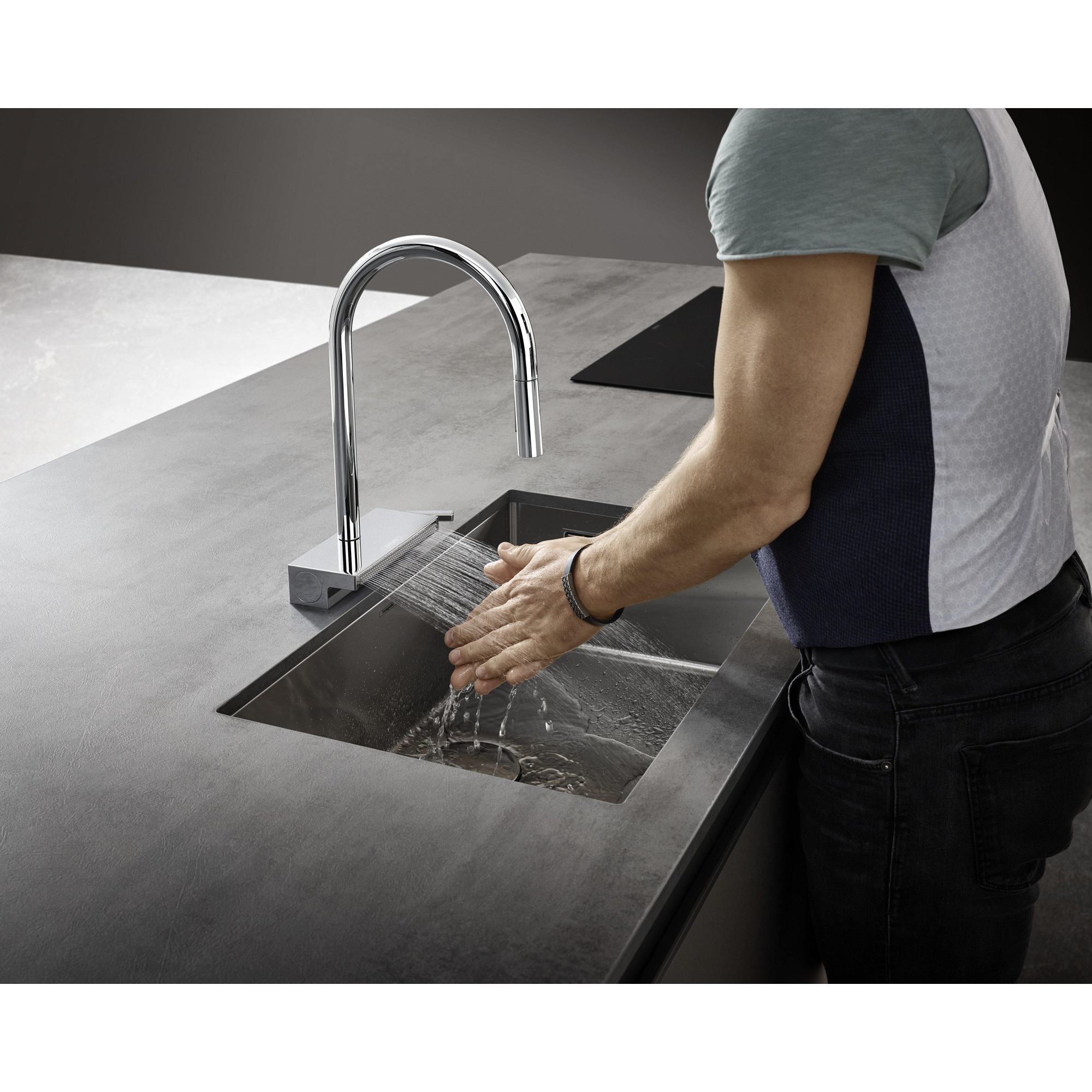 Ce robinet est un véritable point focal dans votre cuisine. La finition chromée brillante offre un aspect moderne et luxueux qui s'adapte sans effort à divers styles d'intérieur. Le design épuré et courbé apporte une touche élégante sans compromettre la fonctionnalité. Grâce aux détails subtils, comme le support magnétique pour la douchette extractible, tout paraît soigné et ordonné. Vous ajoutez ainsi non seulement un élément pratique, mais aussi un accent stylé qui élève votre cuisine à un niveau supérieur.