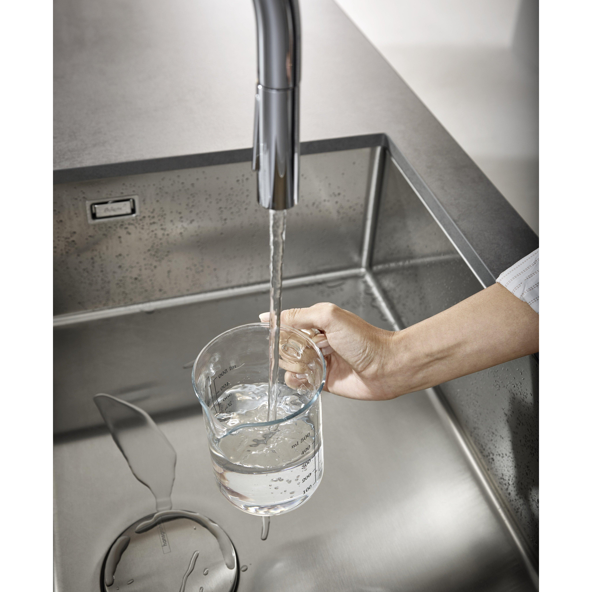 Avec un robinet de ce calibre, vous choisissez une qualité qui dure longtemps. Le système de mélange céramique durable garantit une manipulation fluide et évite les fuites, tandis que les matériaux de haute qualité résistent à l'usage quotidien et à la formation de calcaire. Grâce à la technologie QuickClean, vous éliminez facilement le calcaire en passant simplement sur les picots en silicone, ce qui réduit le temps d'entretien. De plus, le fabricant offre jusqu'à 15 ans de garantie sur les pièces détachées, vous assurant une tranquillité d'esprit quant à la longévité de ce produit.