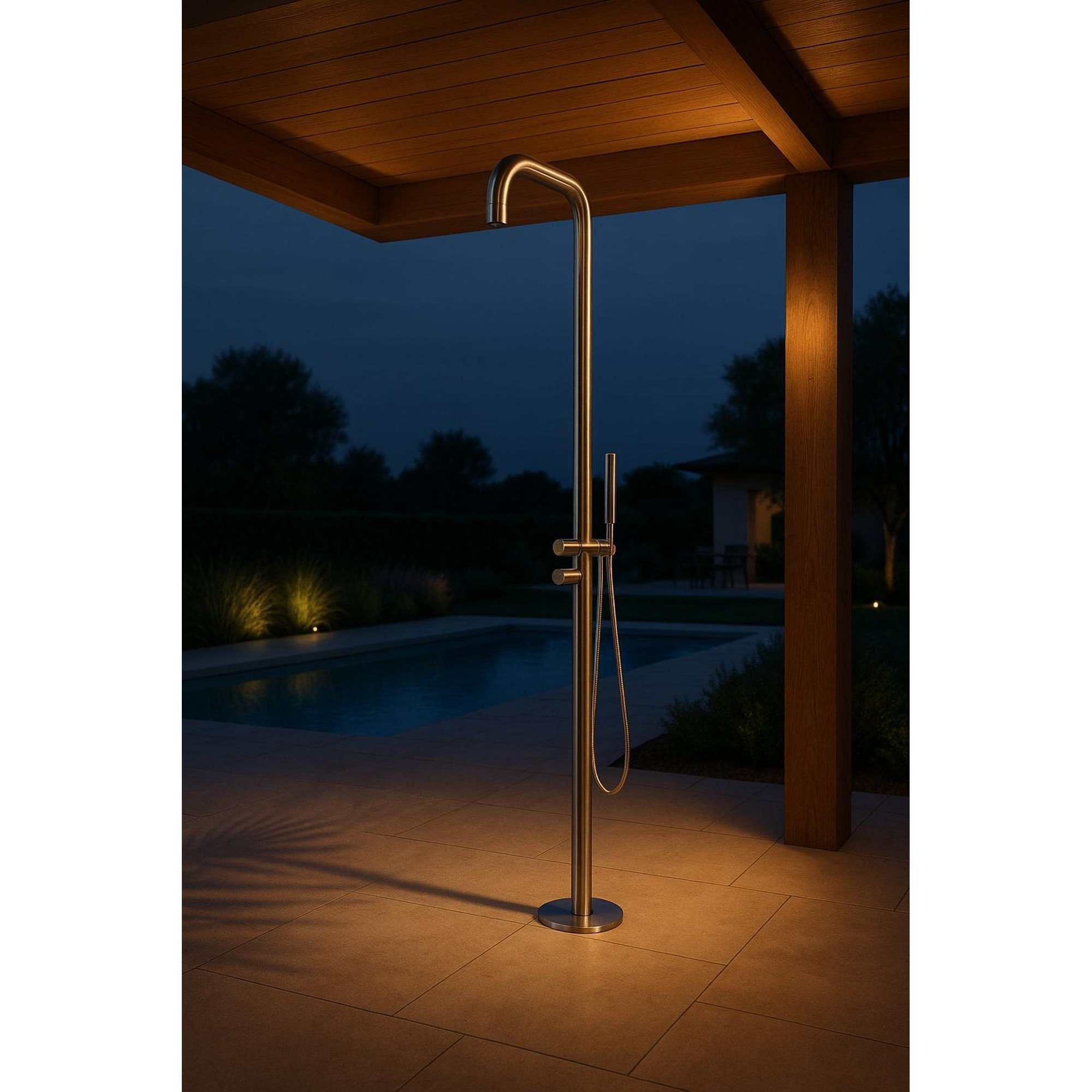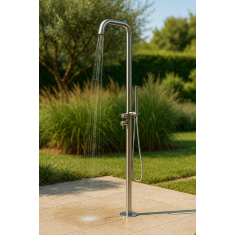 Fugaflow douche extérieure autoportante en acier inoxydable 316 douchette à main en acier inoxydable brossé
