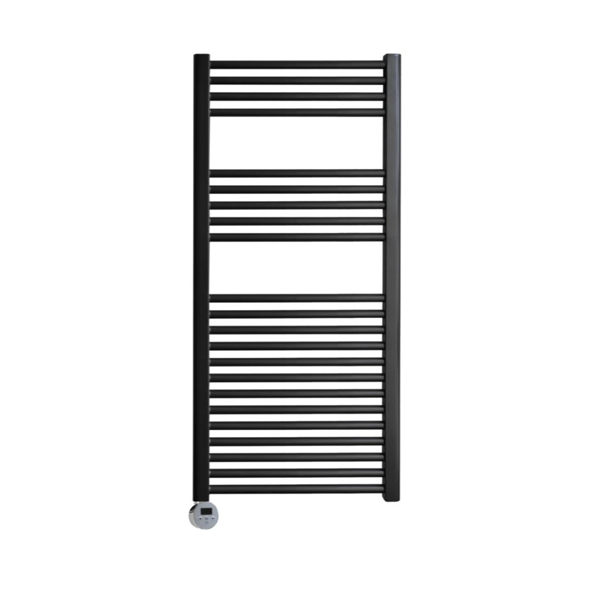 Sanicare Radiateur électrique design - 111.8 x 45 cm - 596 Watt - thermostat chrome bas gauche - noir mat