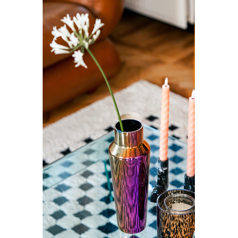 Si vous recherchez un vase à bâtonnets parfumés luxueux qui fait immédiatement sensation dans votre intérieur, alors c’est un choix parfait. Ce grand diffuseur est idéal pour ceux qui aiment une allure élégante, style hôtel chic, dans le séjour, la salle de bains, le hall ou même dans un cabinet ou environnement de travail chaleureux. Grâce à son grand format, cet accessoire est particulièrement adapté aux pièces de taille moyenne à grande, où vous souhaitez une expérience olfactive constante et subtile sans devoir vous occuper en permanence de bougies ou de sprays. La combinaison d’un élégant vase en verre, d’une distinctive teinte violette métallisée et d’un parfum raffiné en fait un véritable accroche-regard qui ajoute atmosphère, chaleur et personnalité à votre salle de bains et au reste de votre maison.