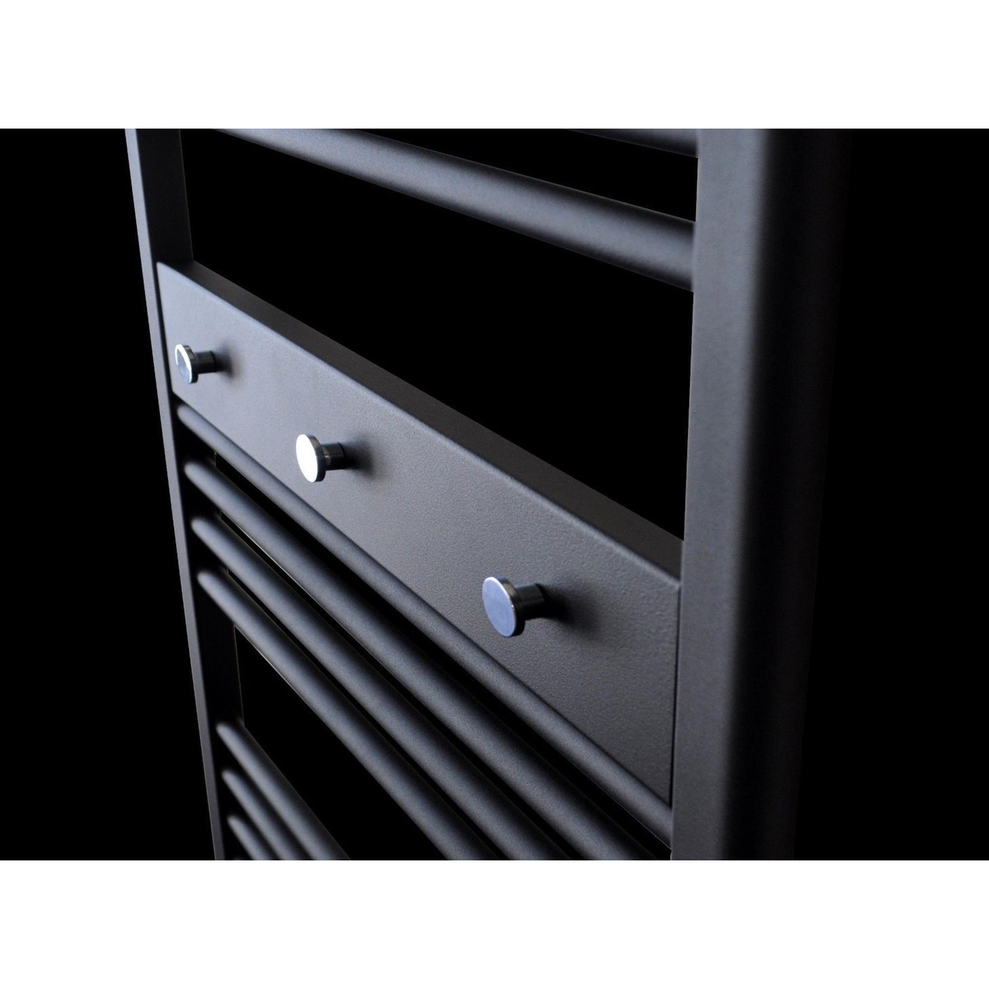 Sanicare Panneau porte-serviettes - 51.7x9.2x2.7cm - pour radiateur - 3 boutons porte-serviettes chromés - noir mat