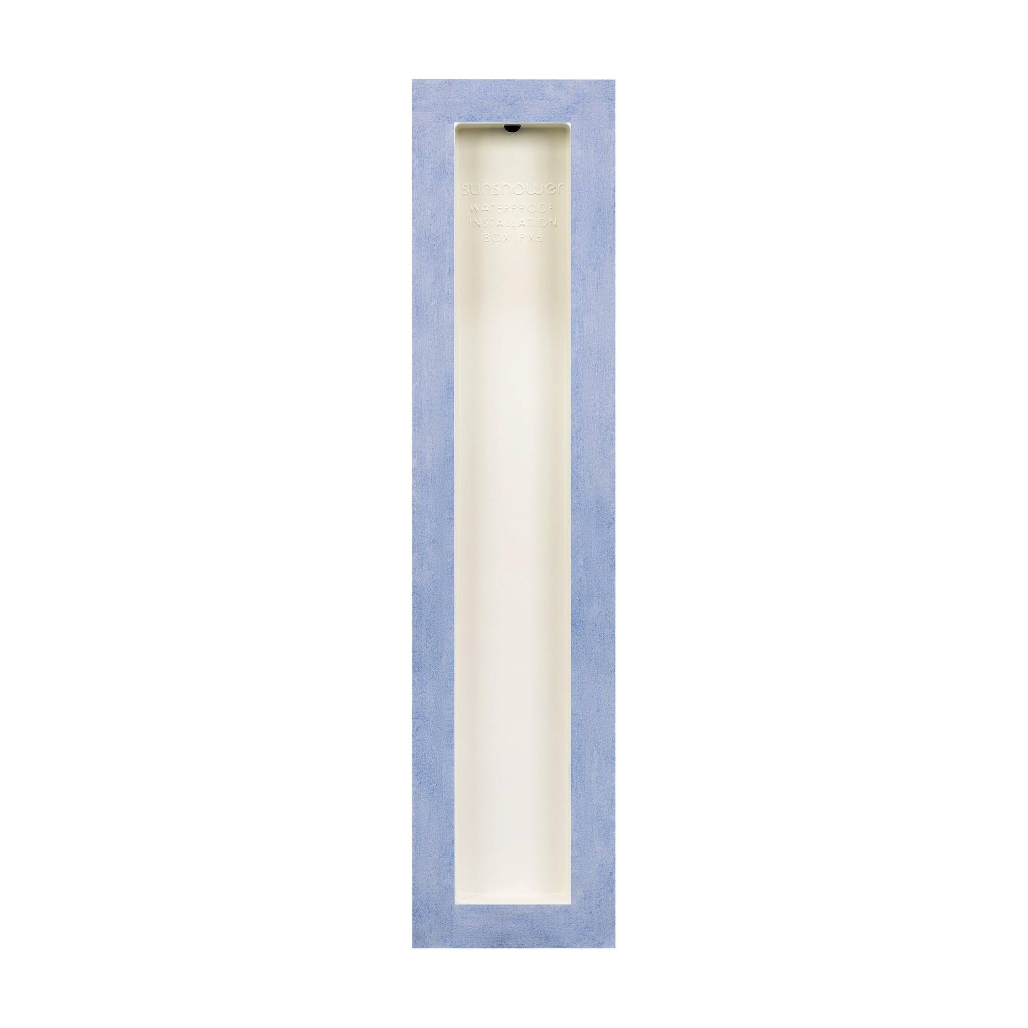 Avec cette boîte d'installation, vous donnez à votre salle de bains une finition professionnelle et épurée lors de l'installation d'un panneau infrarouge Sunshower. Cette niche étanche est spécialement conçue pour intégrer le panneau infrarouge de manière soignée et sûre, de sorte qu'aucun élément libre ne reste visible et que tout soit parfaitement intégré dans le mur. Grâce à la faible profondeur d'encastrement de seulement 10 cm, il reste suffisamment d'espace dans votre salle de bains, tout en profitant d'une construction solide et durable qui répond aux exigences strictes du Code du bâtiment et de la norme DIN 18534. Que vous réalisiez un projet de construction neuve ou une rénovation, cette boîte d'installation garantit une niche propre et finie qui confère à votre salle de bains une apparence moderne et soignée. Vous profitez ainsi non seulement de la chaleur et du confort du Sunshower, mais aussi d'une installation bien pensée et fiable qui durera de nombreuses années.