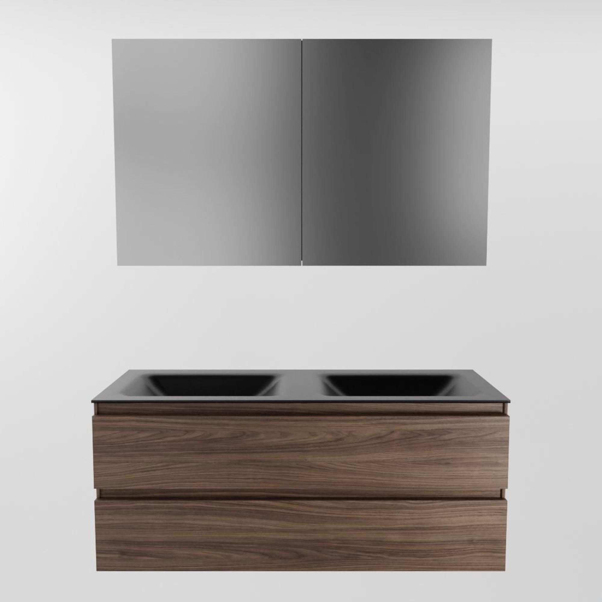 Mondiaz AIVY Ensemble de meuble - 120x45x50cm - 0 trous de robinet - 2 vasques Urban Solid surface - Gauche et droite - 2 tiroirs - avec armoire de toilette - Melamine Mocha