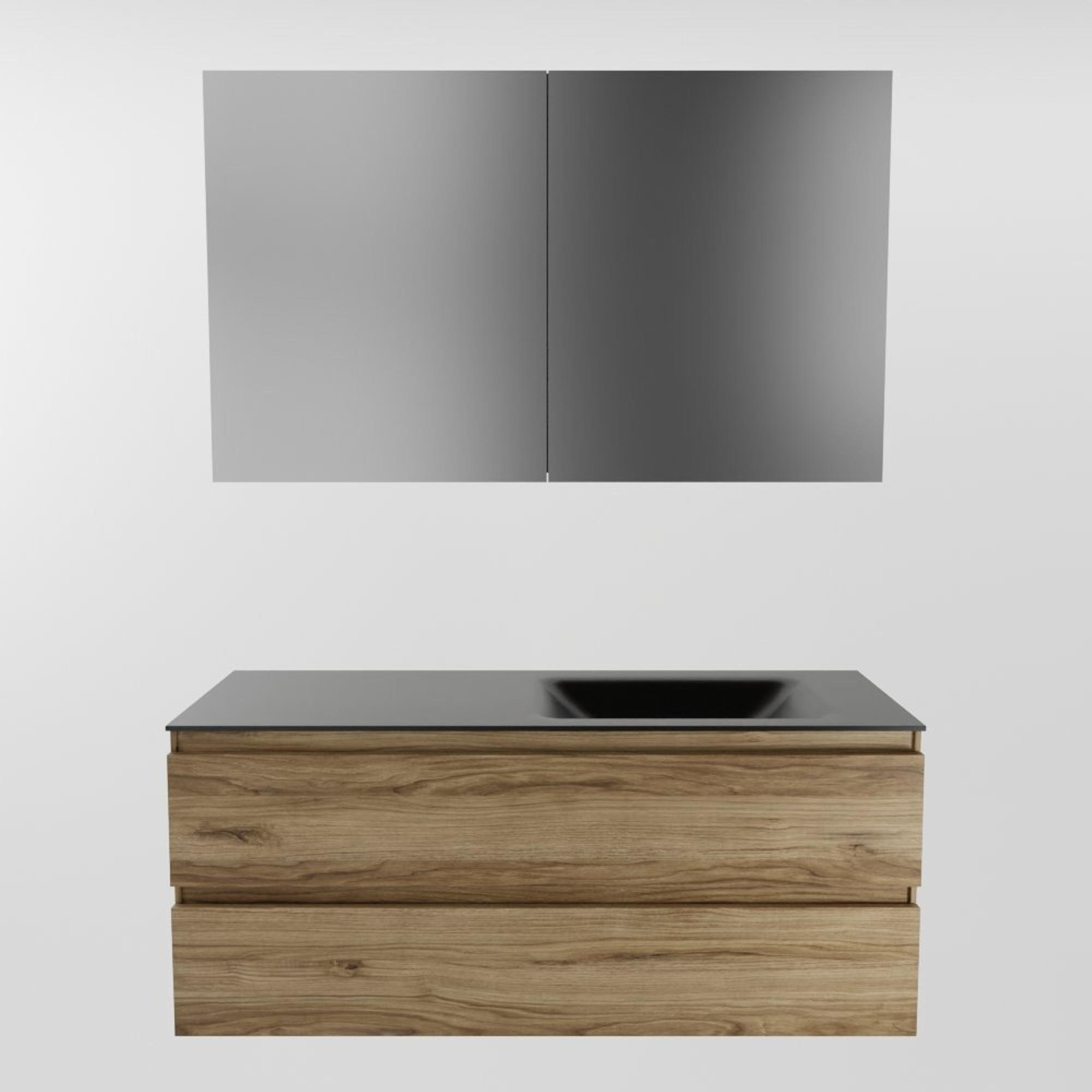 Mondiaz AIVY Ensemble de meuble - 120x45x50cm - 0 trous de robinet - 1 vasque Urban Solid surface - Droite - 2 tiroirs - avec armoire de toilette - Melamine Chai