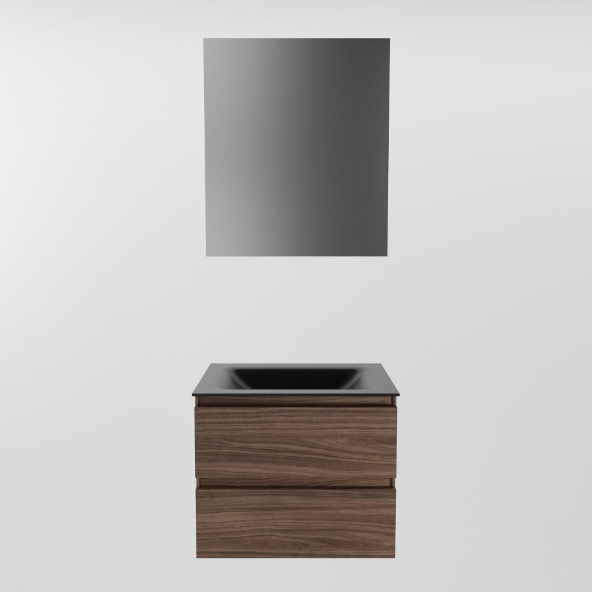 Mondiaz AIVY Ensemble de meuble - 60x45x50cm - 0 trous de robinet - 1 vasque Urban Solid surface - Centre - 2 tiroirs - avec miroir - Melamine Mocha