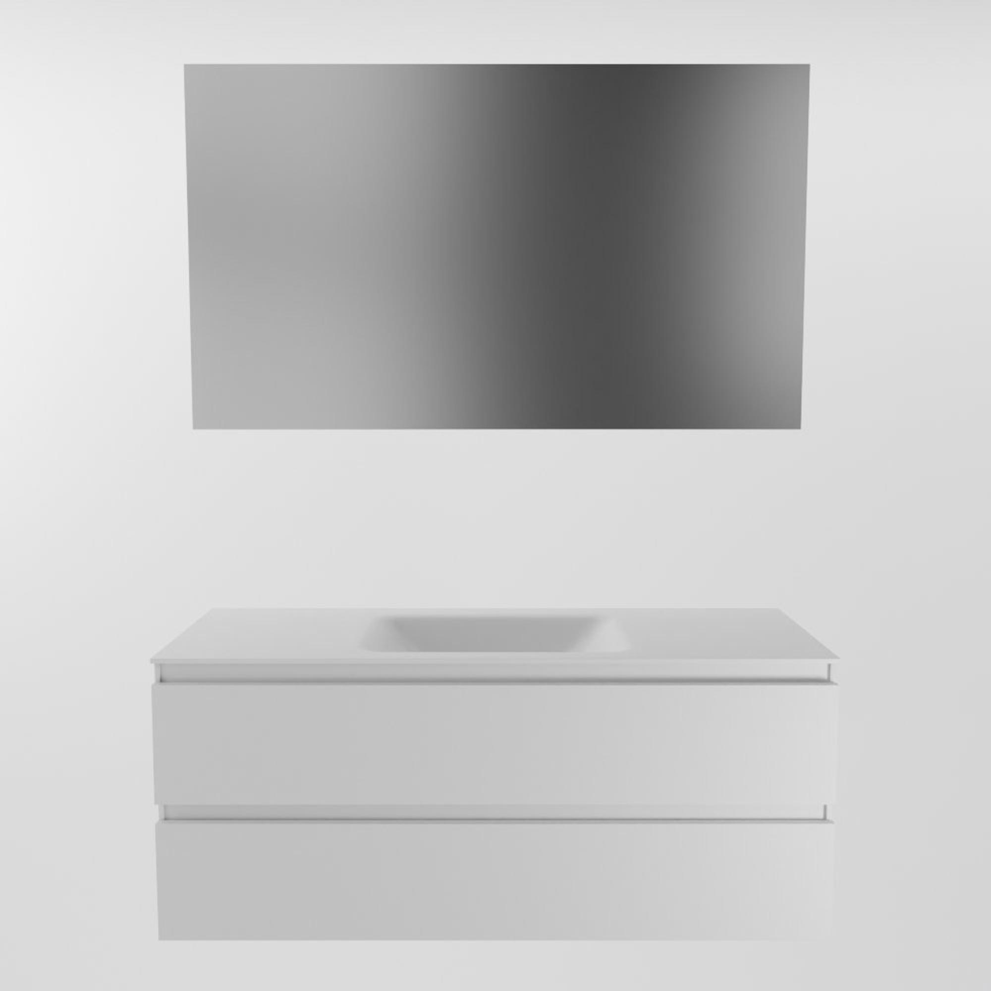 Mondiaz AIVY Ensemble de meuble - 120x45x50cm - 0 trous de robinet - 1 vasque Talc Solid surface - Centre - 2 tiroirs - avec miroir - MDF Talc