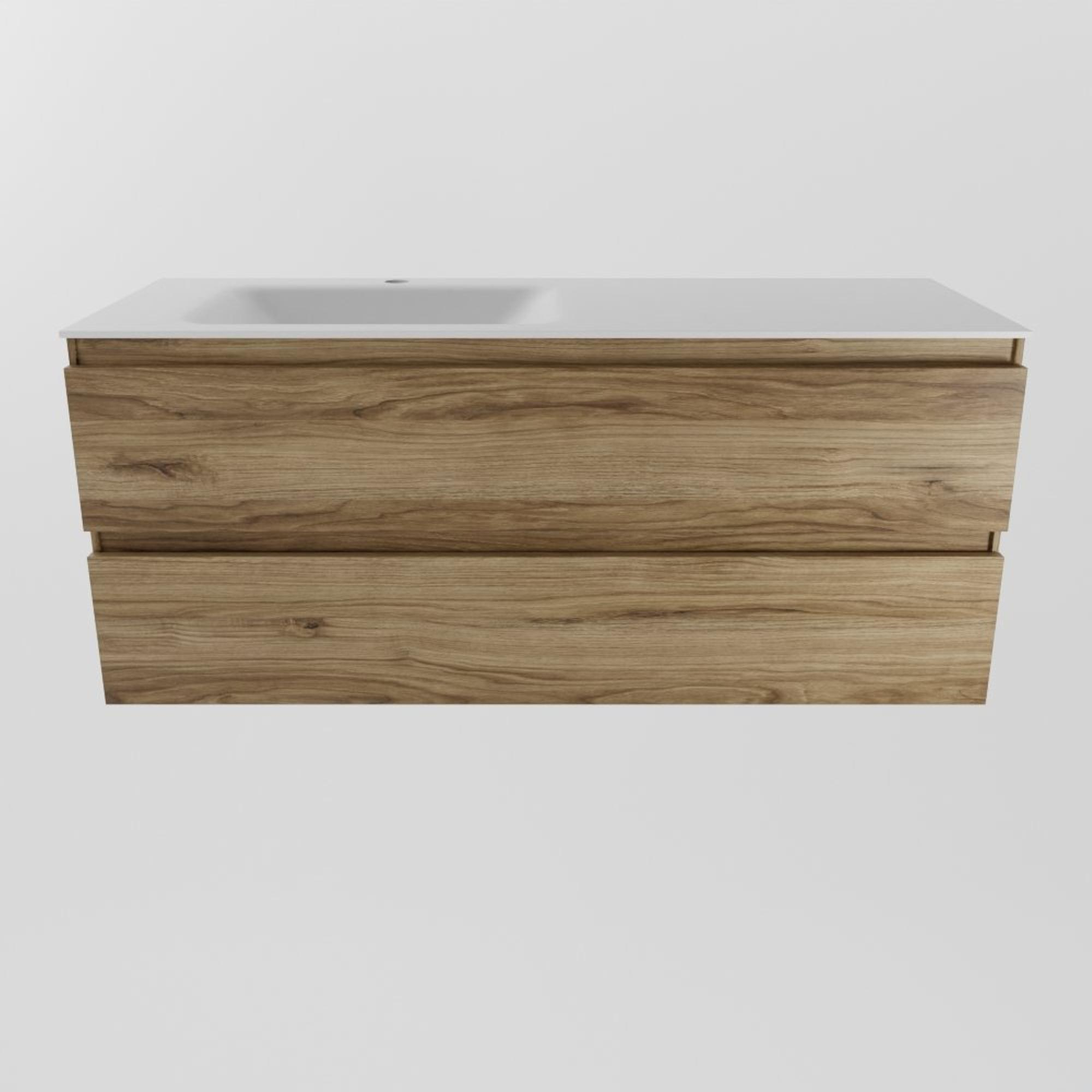Mondiaz AIVY Ensemble de meuble - 120x45x50cm - 1 trou de robinet - 1 vasque Talc Solid surface - Gauche - 2 tiroirs - avec armoire de toilette - Melamine Chai