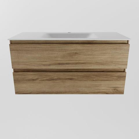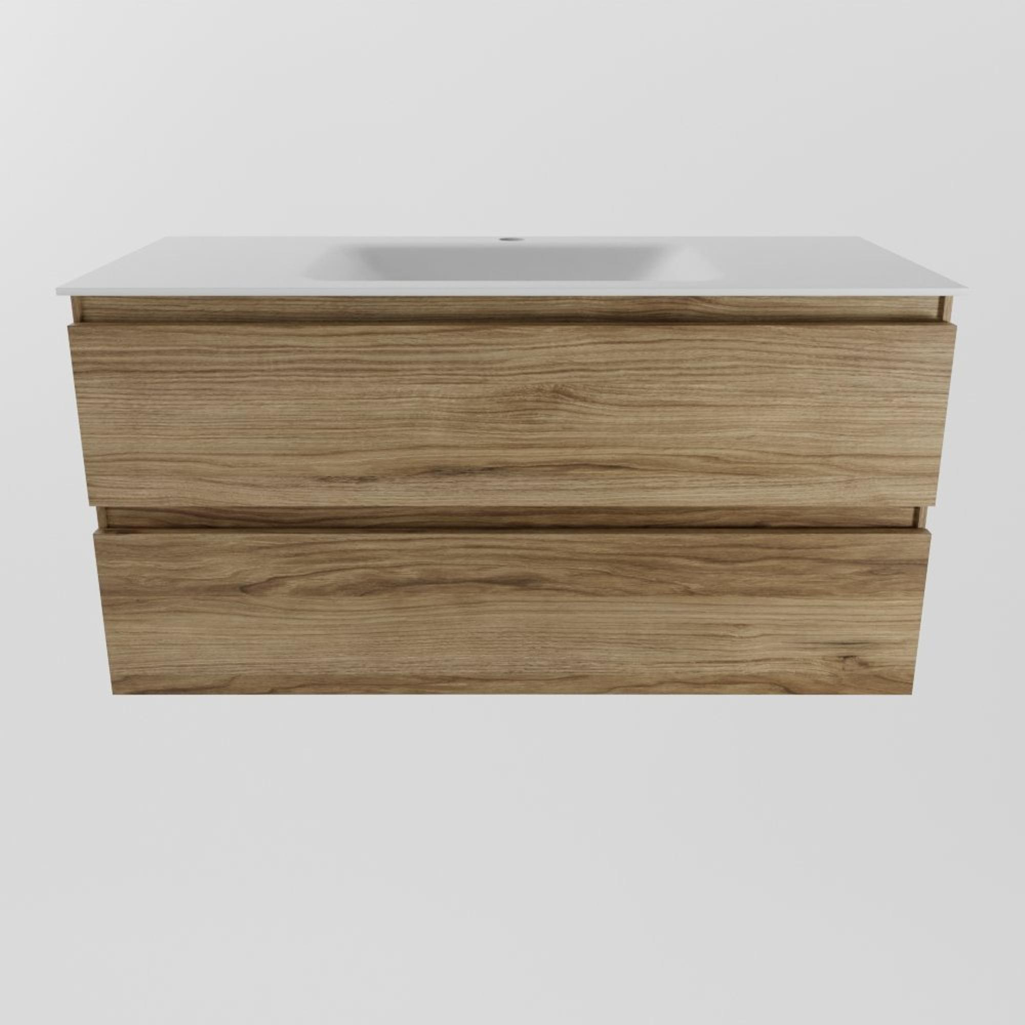 Mondiaz AIVY Ensemble de meuble - 100x45x50cm - 1 trou de robinet - 1 vasque Talc Solid surface - Centre - 2 tiroirs - avec armoire de toilette - Melamine Chai