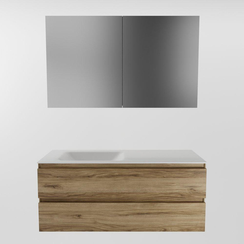 Mondiaz Aivy Ensemble de meuble - 120x45x50cm - 0 trou de robinet - 1 lavabo acrylique Solid surface - Gauche - 2 tiroirs - Avec armoire de toilette - Mélamine Chai