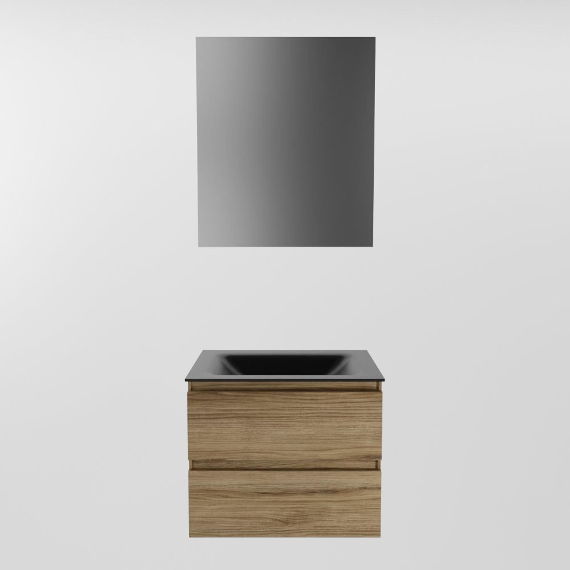 Mondiaz AIVY Ensemble de meuble - 60x45x50cm - 0 trous de robinet - 1 vasque Urban Solid surface - Centre - 2 tiroirs - avec miroir - Melamine Chai