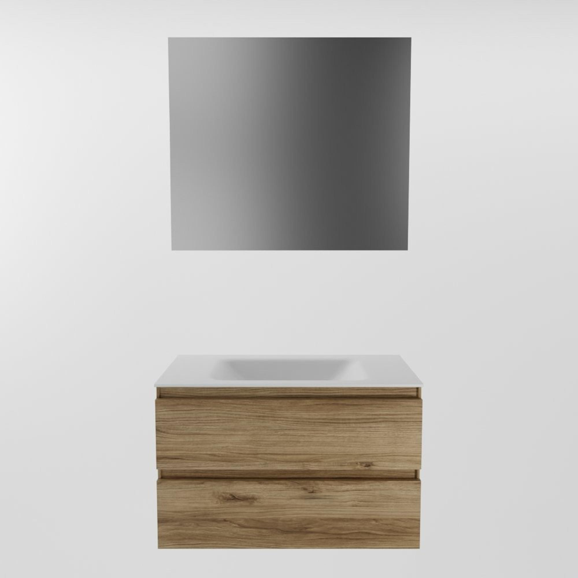 Mondiaz AIVY Ensemble de meuble - 80x45x50cm - 0 trous de robinet - 1 vasque Talc Solid surface - Centre - 2 tiroirs - avec miroir - Melamine Chai