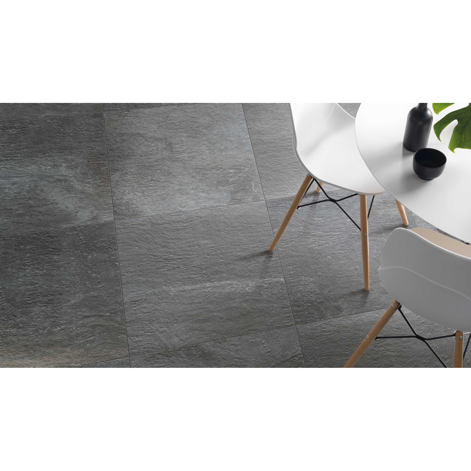 La couleur anthracite élégante avec look pierre naturelle se marie parfaitement avec les salles de bains modernes et industrielles, mais se combine tout aussi facilement avec des accents en bois ou des tons doux pour une atmosphère chaleureuse type spa. Comme il s’agit d’un carrelage céramique, vous profitez de tous les avantages de ce matériau : il absorbe à peine l’humidité, est stable en forme et facile à nettoyer. Alors que la véritable pierre naturelle est souvent sensible aux taches et nécessite des produits de nettoyage spécifiques, ce carrelage est beaucoup plus indulgent dans l’usage quotidien. Vous profitez ainsi de l’aspect luxueux de la pierre, avec la fiabilité et la facilité d’entretien que vous êtes en droit d’attendre d’un carrelage de sol céramique de haute qualité.