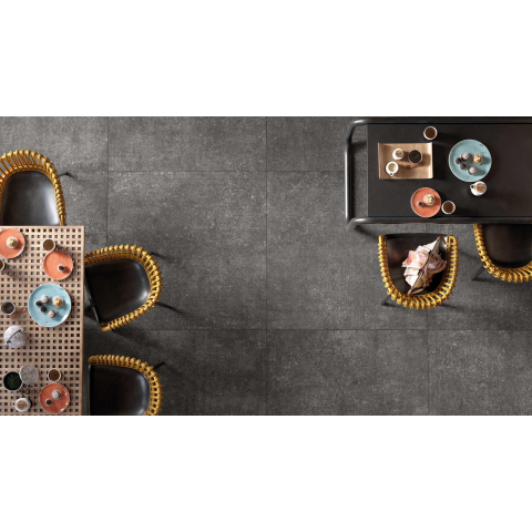 La structure subtile du béton et la couleur anthracite uniforme donnent immédiatement à votre espace une ambiance luxueuse et minimaliste. Comme il s’agit d’un carrelage uni à surface plane, le sol paraît calme et élégant, sans motif chargé, tandis que l’aspect béton apporte malgré tout suffisamment de dynamisme. Le format carré de 60x60 cm est idéal si vous souhaitez créer une salle de bains d’hôtel moderne, une douche à l’italienne au caractère affirmé ou une cuisine de vie épurée. Si vous posez les carreaux avec des joints fins, vous obtenez presque une surface continue qui agrandit visuellement votre pièce. Cette série s’accorde parfaitement avec des meubles de salle de bains aspect béton, des accents en bois et des accessoires noirs, mais aussi en combinaison avec des carreaux muraux blancs pour un ensemble frais et lumineux.