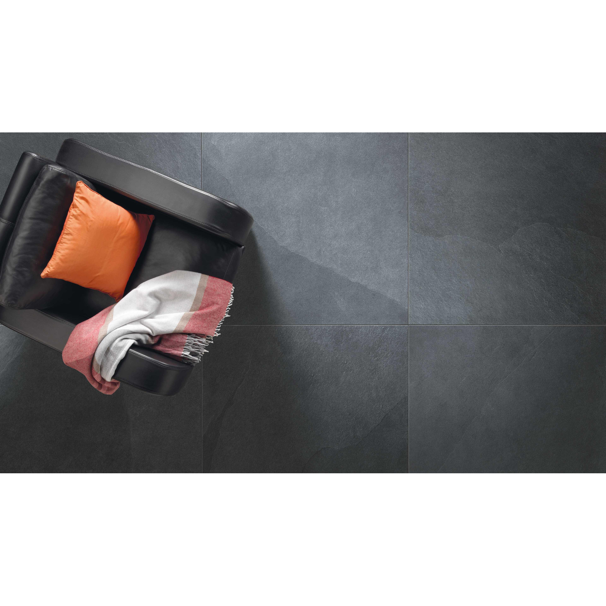 Vous recherchez un carrelage généreux et moderne qui donne immédiatement un aspect haut de gamme à votre salle de bains, vos toilettes ou votre espace de vie ? Avec ce grand carreau carré aspect pierre, vous créez une base apaisante et luxueuse qui s’intègre parfaitement dans les intérieurs contemporains, industriels et minimalistes. Grâce au format de 100x100 cm, vous avez peu de joints, ce qui agrandit visuellement l’espace et donne un ensemble épuré et aéré. La couleur Lavagna noire mate s’accorde parfaitement avec des robinetteries noires, des meubles aspect béton et des matériaux naturels comme le bois et les tons chauds. Ce type de carrelage est un choix judicieux si vous souhaitez créer un ensemble continu au sol et au mur, par exemple dans une douche à l’italienne ou une salle de bains façon hôtel de luxe, mais il trouve également parfaitement sa place dans un hall, un sol de séjour ou une cuisine.