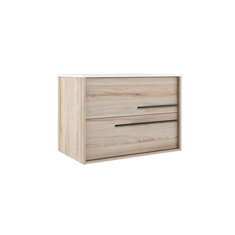 Saniclass Prime Essential Meuble sous lavabo - 80x55x46cm - 2 tiroirs - Poignée standard - MDF - chêne clair