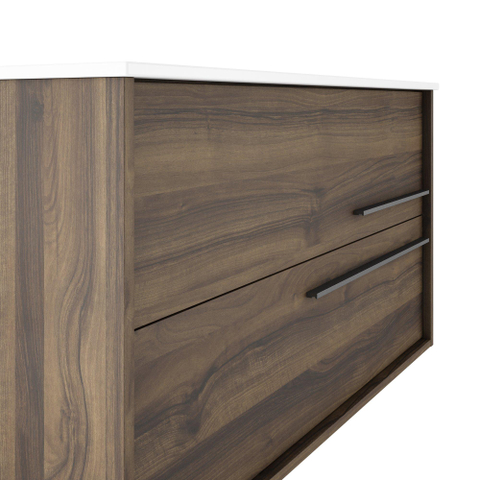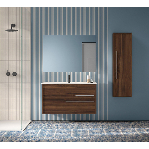 Saniclass Prime Essential Meuble sous lavabo - 100x55x46cm - 2 tiroirs - Poignée standard - MDF - noyer (bois)