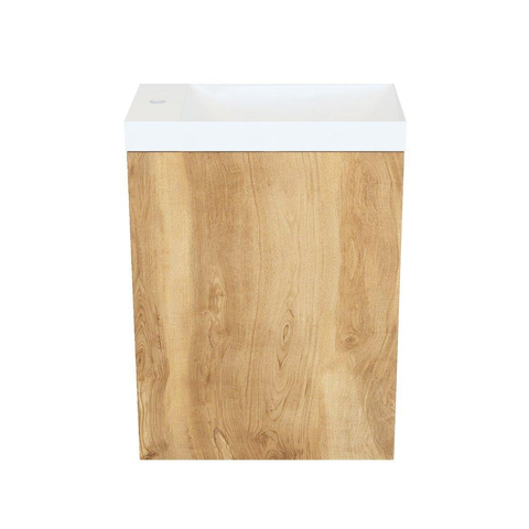 Arcqua Marble Ensemble fontaine - 40x22x54.5cm - fontaine blanc brillant - sans trop-plein - chêne naturel