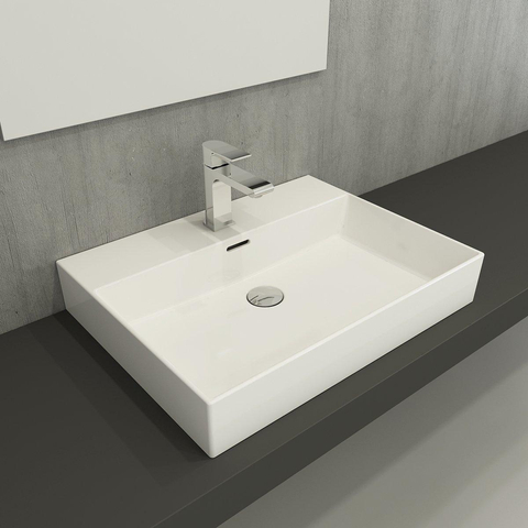 Meubelwastafel - 61x12x46cm - avec trop-plein - 1 vasque - 1 trou de robinet - céramique - blanc