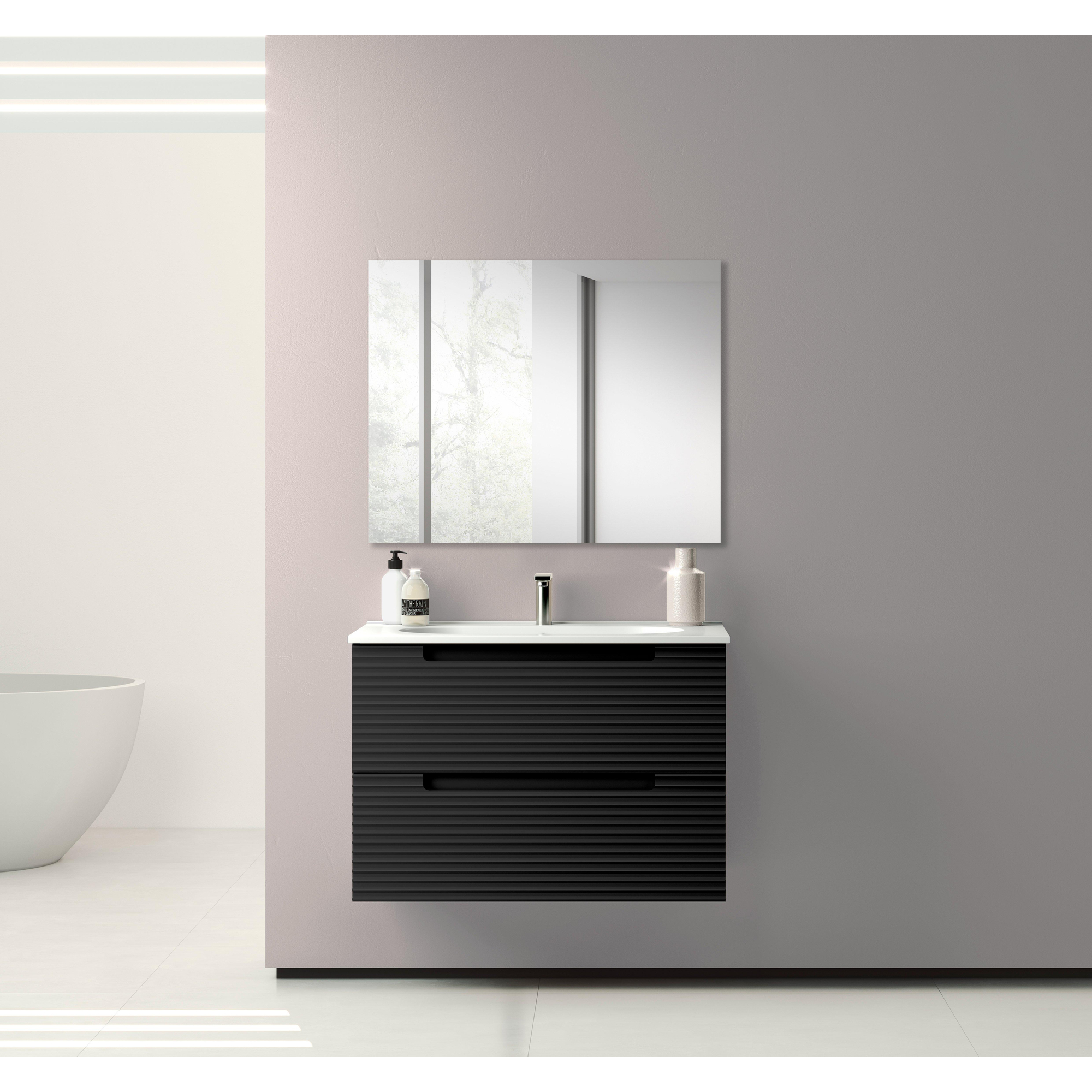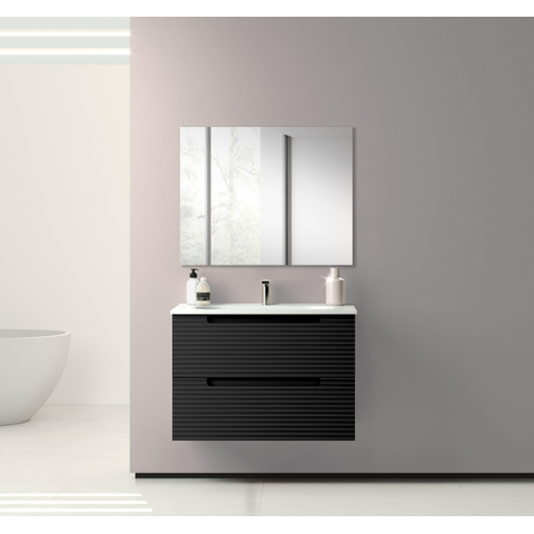 Saniclass Prime Balance Ensemble meuble de salle de bains - 80x55x45cm - 1 vasque ovale en céramique blanche - 1 trou de robinet - 2 tiroirs - miroir rectangulaire - noir mat