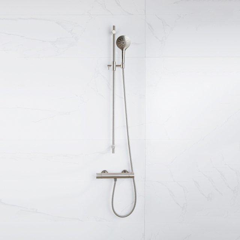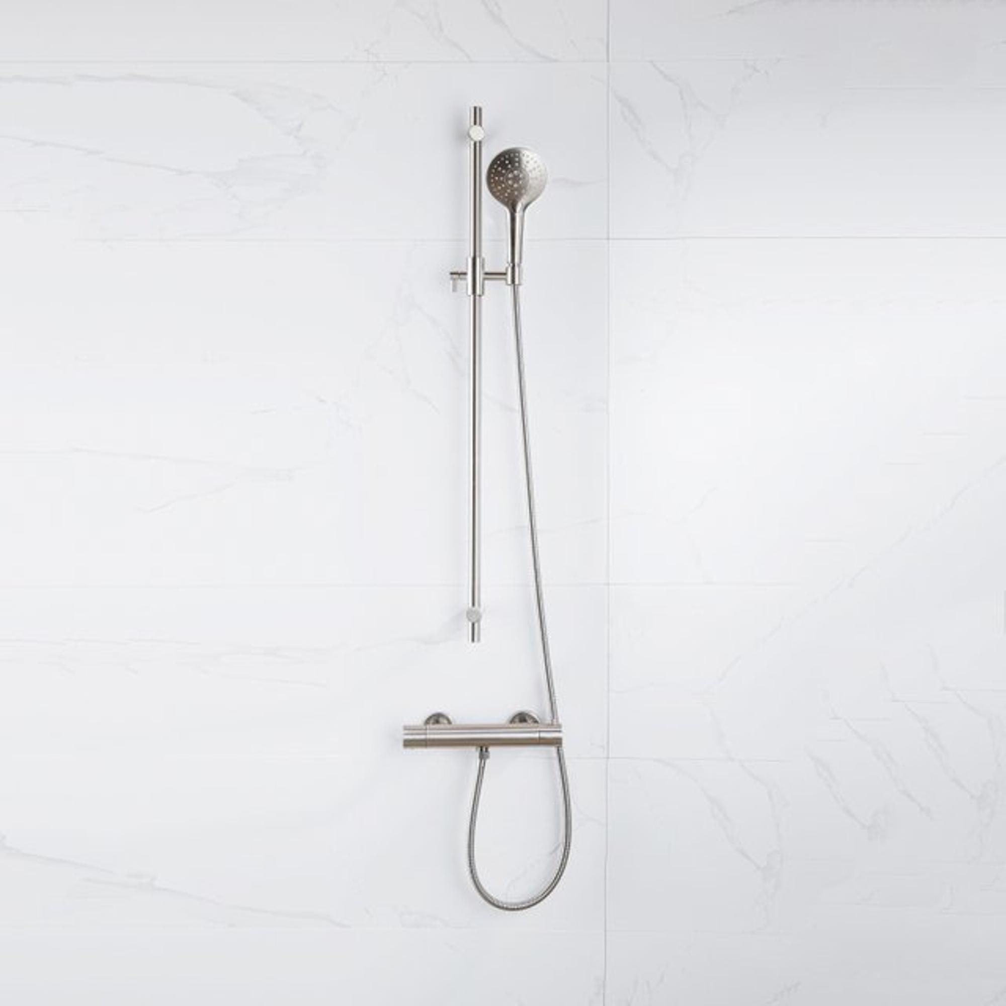 Fortifura Calvi Mitigeur de douche - avec barre de curseur - douchette ronde - flexible lisse - Inox brossé PVD