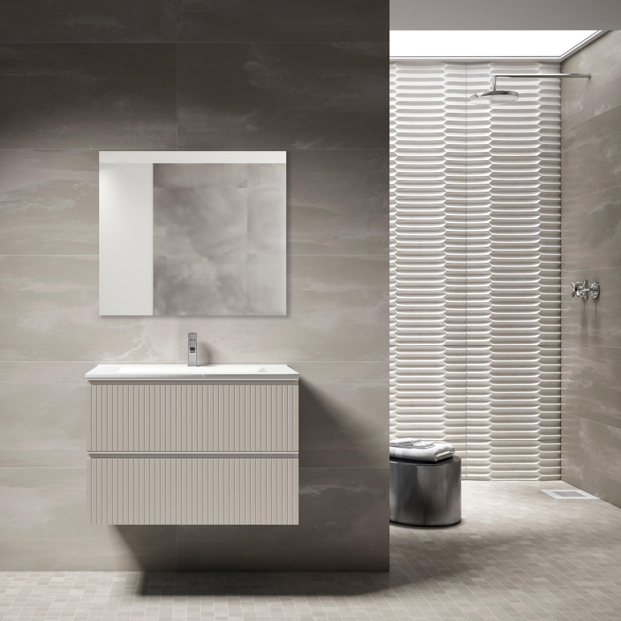 Saniclass Prime Blend Ensemble meuble de salle de bains - 80x55x46cm - 1 vasque rectangulaire en céramique blanche - 1 trou de robinet - 2 tiroirs - miroir rectangulaire - coton mat (beige)