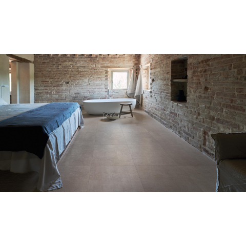 La série Terra Crea est connue pour son subtil aspect argile : calme, naturel et sans motif chargé. La couleur Corda est une teinte beige chaude qui donne immédiatement à votre salle de bains une atmosphère douce et accueillante. Combinée à la finition mate, elle crée un aspect sobre, presque digne d’un hôtel, qui s’accorde sans effort avec des produits sanitaires blancs, des robinets noirs ou au contraire des meubles en bois. Le format 60x60 crée un jeu de lignes épuré et peu d’interruptions dans la surface, ce qui fait paraître votre espace plus grand et plus paisible. Si vous cherchez des carreaux qui ne réclament pas l’attention mais qui respirent clairement la qualité, cette série y répond parfaitement.