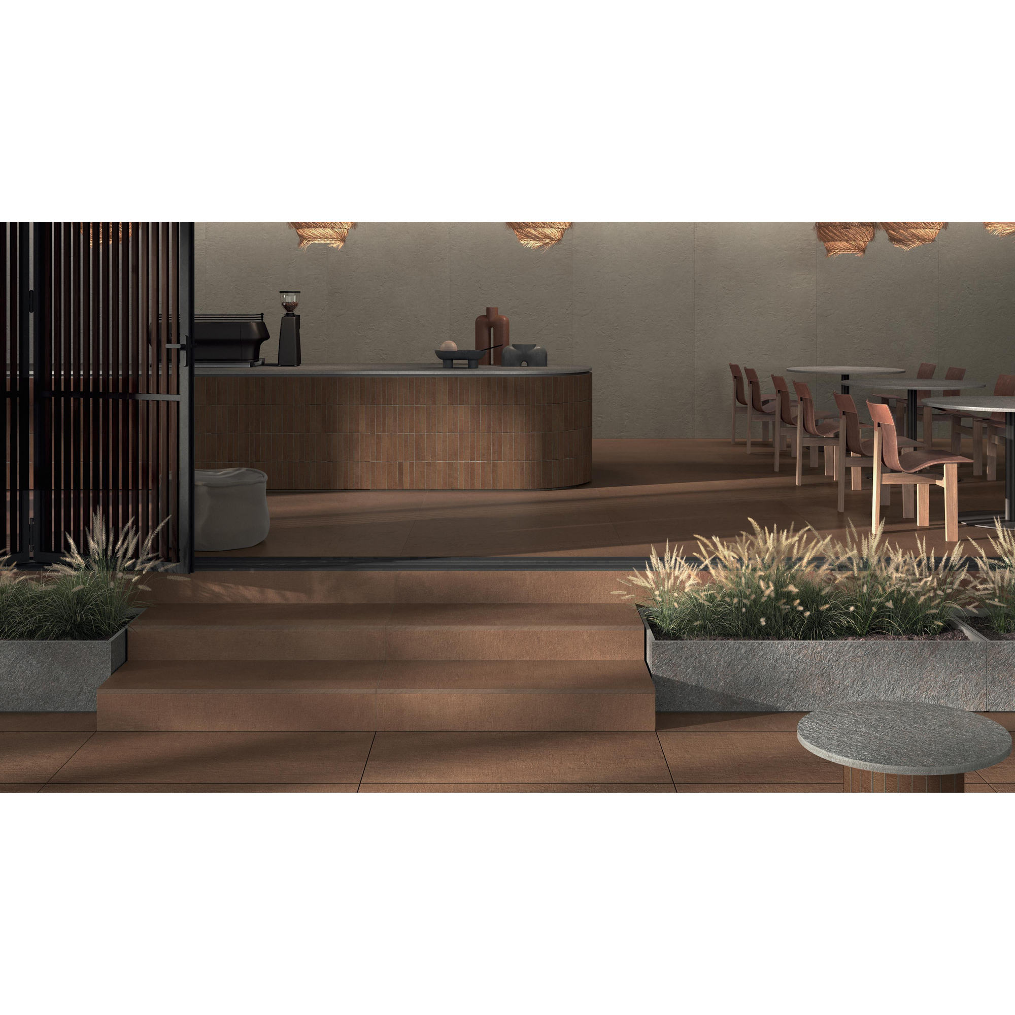 La série Terra Crea est connue pour son caractère naturel inspiré de l’argile, et c’est précisément ce que l’on retrouve dans la teinte chaude Mattone. La couleur brune aux nuances subtiles évoque la terre cuite et crée immédiatement une atmosphère agréable, sans devenir dominante. Combinée à des robinets noirs, des accents de bois ou des éléments sanitaires aspect béton, elle donne une allure de spa moderne, tandis qu’avec des meubles blancs et des joints clairs, vous créez justement une base calme et minimaliste. Le format carré 80x80 assure des lignes épurées avec peu de joints, ce qui non seulement paraît chic, mais fait également paraître votre salle de bains plus grande visuellement. Vous créez ainsi avec un seul type de carreau une base forte et intemporelle que vous pouvez continuer à associer pendant des années à des styles et accessoires changeants.