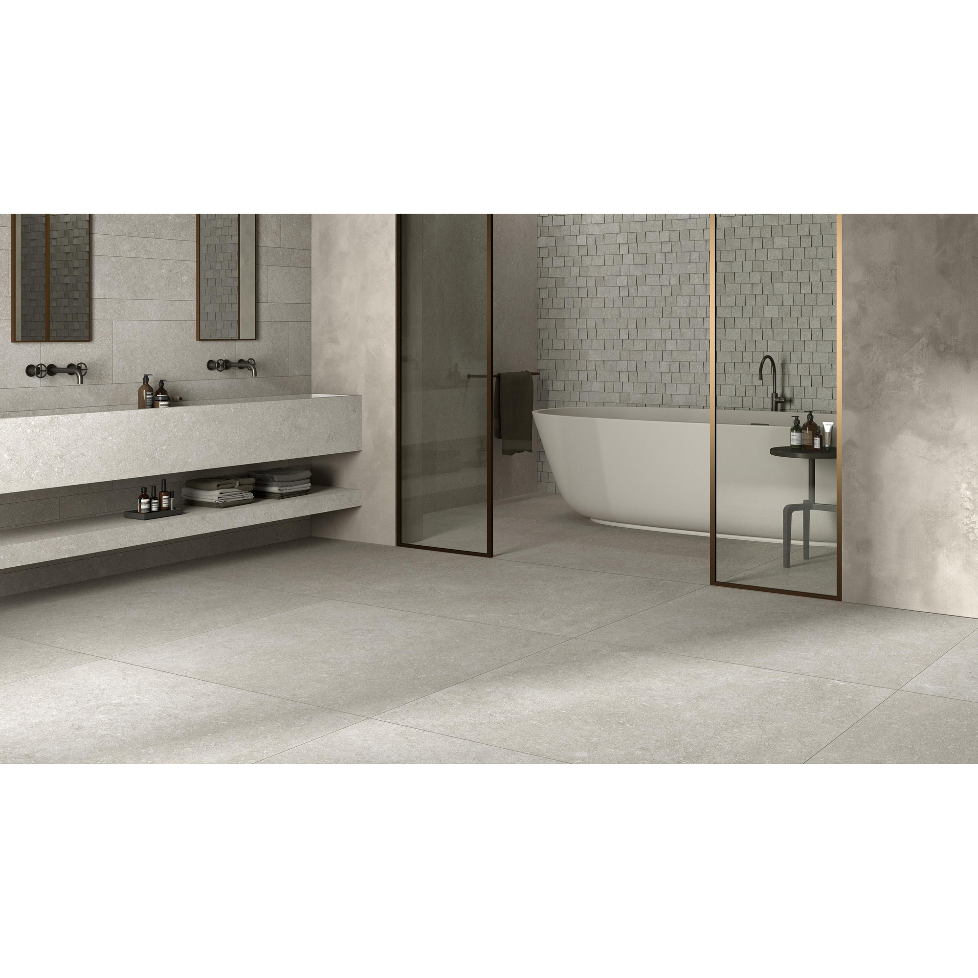 Avec ce carreau généreux, vous créez en une seule fois une base calme et haut de gamme dans votre salle de bains, vos toilettes ou votre séjour. Le format allongé se prête parfaitement aux grands sols et murs, mais peut aussi donner à une petite salle de bains un aspect visuellement plus long et plus apaisant. Grâce au look pierre naturelle raffiné dans une teinte grise neutre, il s’intègre sans effort dans les intérieurs modernes et minimalistes, mais aussi dans un concept chaleureux de style hôtel chic. Si vous recherchez un carreau qui peut être utilisé aussi bien au sol qu’au mur, adapté à un usage quotidien intensif et qui restera élégant pendant de nombreuses années, c’est un choix judicieux dont vous profiterez longtemps.