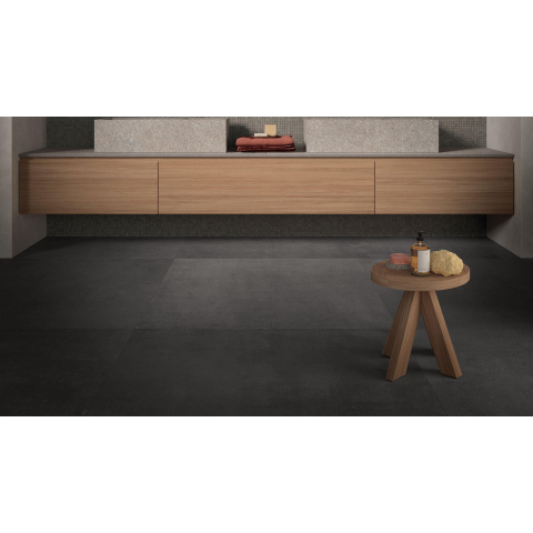 Le carreau a une épaisseur de 10 mm et est rectifié, ce qui signifie que les bords sont sciés avec précision. Vous pouvez ainsi travailler avec des joints étroits et réaliser un calepinage très épuré et moderne. Idéal si vous aimez un sol calme, au rendu haut de gamme, sans interruptions inutiles. La céramique est en outre dure, résistante à l’usure et facile à nettoyer : la saleté ne pénètre pas dans le carreau et, avec un détergent neutre, vous gardez le tout frais sans effort. Grâce à sa résistance au gel, le carreau est également une option intéressante pour, par exemple, des toilettes ou une pièce non chauffée. Comme il peut être utilisé à la fois comme carrelage de sol et de mur, vous disposez avec une seule série d’une solution complète pour l’aménagement de toute votre salle de bains.