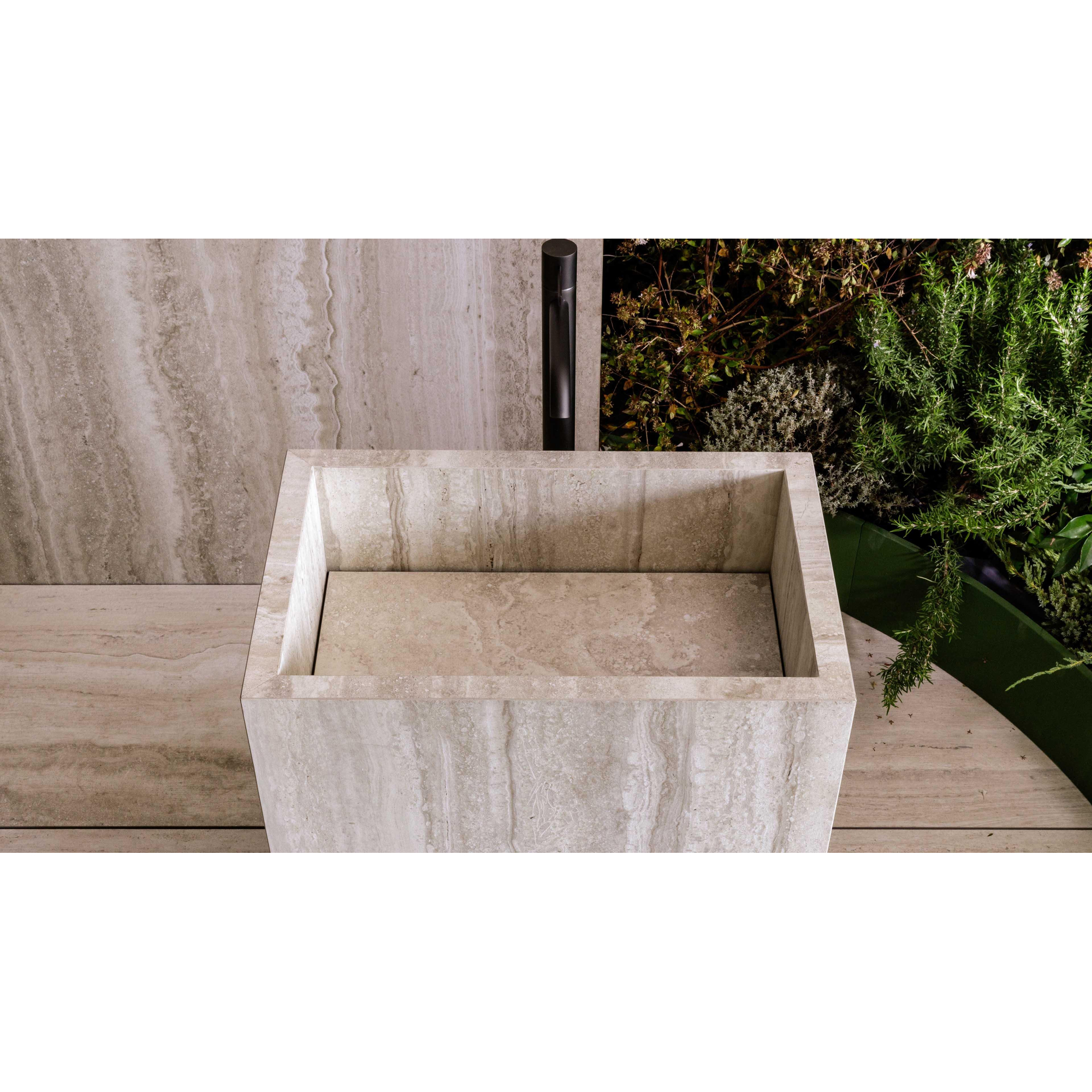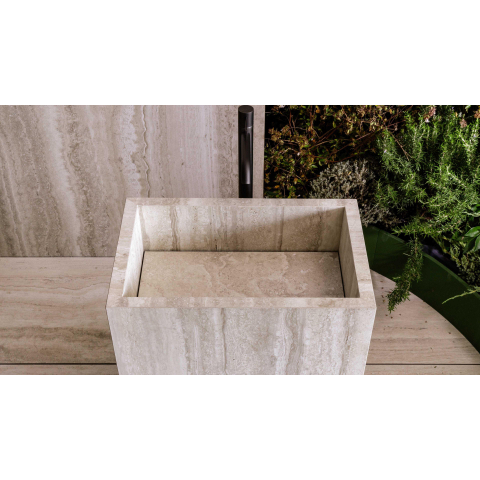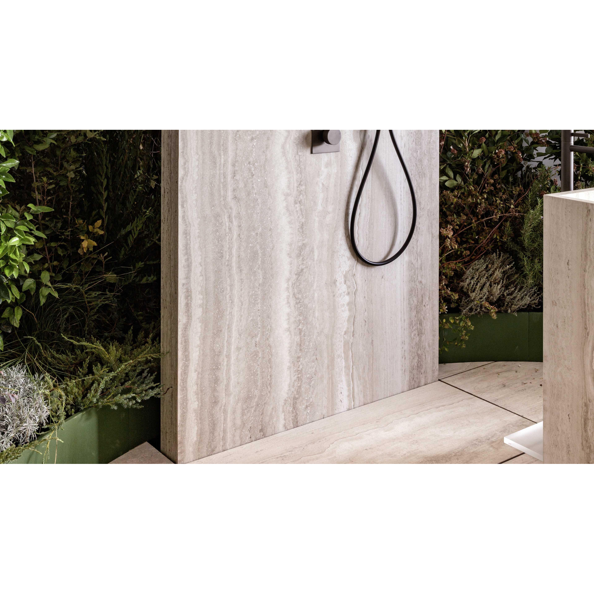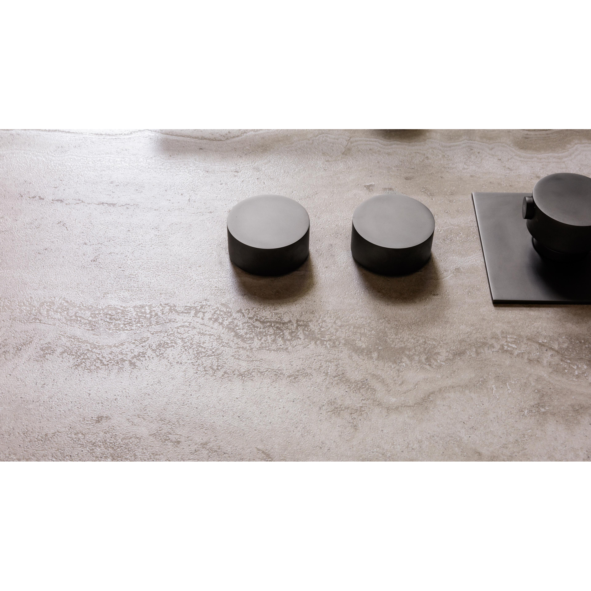 Le format de 60x120 cm donne immédiatement à votre salle de bains une allure architecturale haut de gamme. Moins de joints signifie un aspect d’ensemble plus calme et plus d’espace visuel, idéal si vous souhaitez créer un sol uniforme et épuré ou prolonger le même carrelage du sol vers le mur. Les bords rectifiés permettent de travailler avec des joints étroits, ce qui met d’autant plus en valeur l’aspect pierre naturelle et donne au sol un rendu presque sans joint. C’est précisément dans une douche à l’italienne, derrière une baignoire autoportante ou le long d’un long couloir que se crée ainsi une atmosphère d’hôtel de luxe. De plus, avec ce format allongé, vous pouvez jouer avec les schémas de pose : droit, en quinconce ou dans le sens de la longueur de la pièce pour un effet d’allongement supplémentaire.