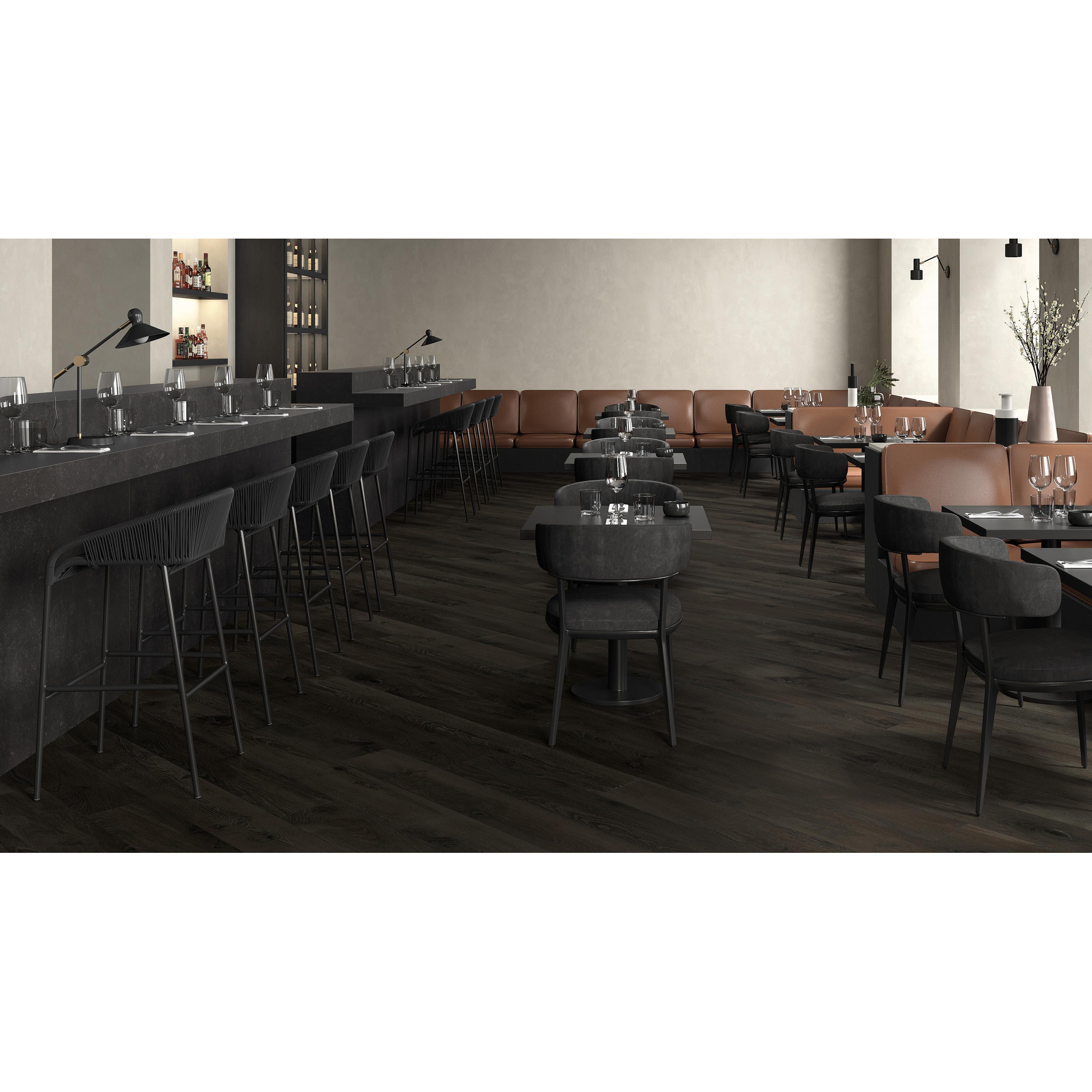 Avec la couleur Mogano brun profond, vous faites entrer la chaleur du véritable bois dans votre intérieur, sans les soucis de rayures, de décoloration ou d’huilage périodique. Le format de planche allongée de 20x120 cm vous permet de poser des motifs tels qu’un parquet classique à lames droites, un motif en pointe de Hongrie ludique ou un alignement moderne et continu. La surface mate évite les reflets gênants et paraît très naturelle, ce qui rend ce carrelage aspect bois parfaitement adapté aussi bien aux salles de bains design modernes qu’aux styles plus rustiques ou industriels. Combinez-le par exemple avec des carreaux muraux blancs pour une ambiance spa rafraîchissante, ou avec des meubles sombres et des robinets noirs pour un ensemble robuste et chic façon hôtel.