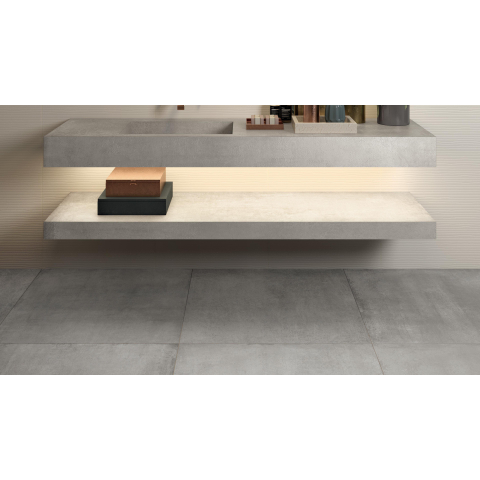 La couleur grise effet béton donne immédiatement à votre intérieur une allure moderne et architecturale, tout en restant étonnamment neutre. Vous pouvez ainsi combiner facilement avec des tons bois chaleureux, des robinets noirs ou des meubles blancs sans que la pièce devienne agitée. La finition unie, uniforme et sans motif chargé crée une base apaisante qui restera belle pendant des années, même si vos goûts en matière d’accessoires évoluent. La finition mate évite les reflets gênants de la lumière et rend ce carreau très adapté aux salles de bains avec spots ou grandes fenêtres. En optant pour cet effet béton apaisant, vous créez un intérieur qui ressemble à une suite d’hôtel de luxe, mais avec les avantages pratiques des carreaux céramiques.