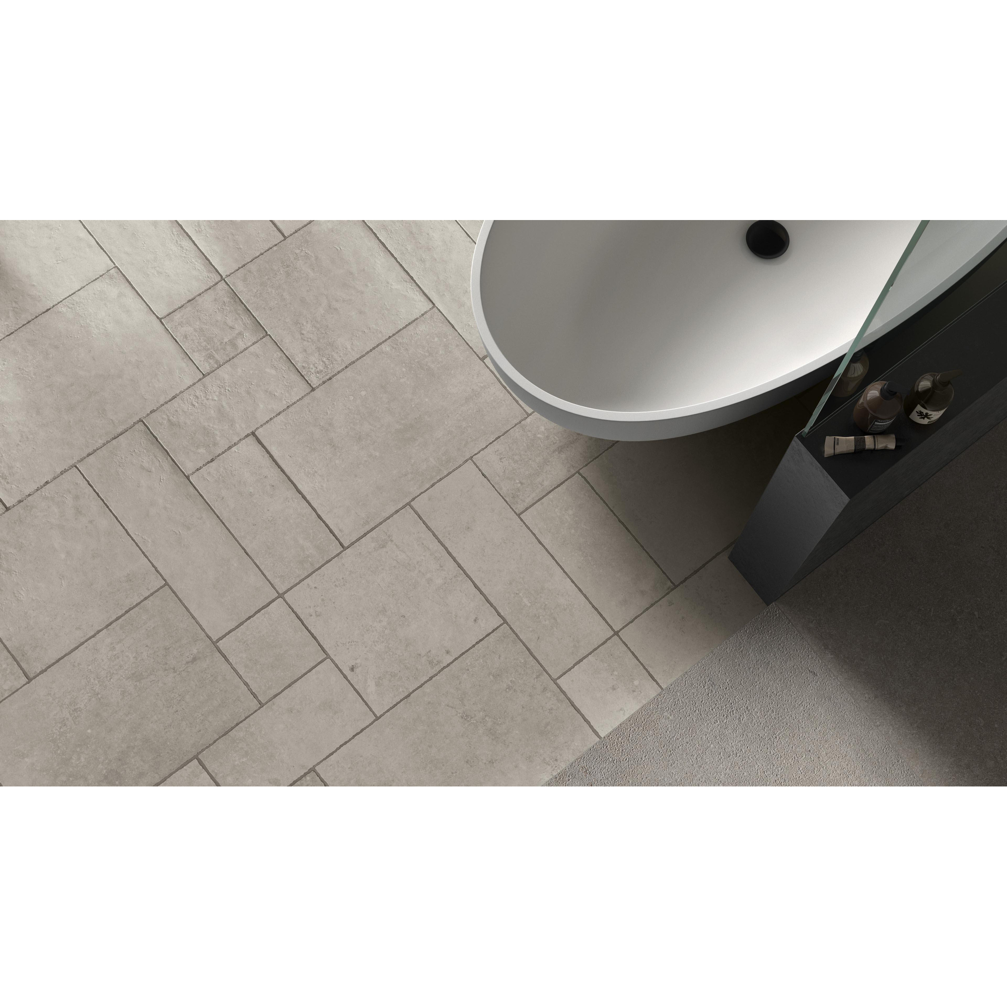 Dans les pièces humides comme la salle de bains, la douche à l’italienne ou le hall, l’adhérence est tout aussi importante que l’apparence. La valeur antidérapante R10 vous apporte ce petit supplément de sécurité, de sorte que vous vous sentiez à l’aise et en sécurité, même avec les pieds mouillés ou des enfants qui jouent à la maison. Le carreau mat et plat réfléchit peu et est agréable sous les pieds, surtout en combinaison avec un chauffage par le sol. Comme le carreau convient aussi bien comme carreau de sol que comme carreau mural, vous pouvez sans hésiter le prolonger dans la zone de douche ou l’utiliser comme paroi arrière de la baignoire, sans compromettre la sécurité ou le confort. Cela fait de ce carreau une base fiable pour un usage quotidien, des heures de pointe du matin aux soirées de détente dans votre salle de bains de rêve.