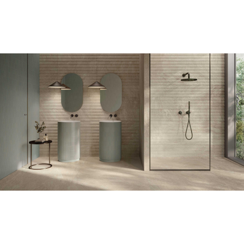 Si vous recherchez un carreau qui combine style, confort et facilité d’utilisation, cet aspect pierre naturelle en grand format est un choix particulièrement judicieux. Créez une base calme et luxueuse dans votre salle de bains, vos toilettes ou votre pièce à vivre et harmonisez sans effort le reste de votre intérieur. Complétez votre salle de bains de rêve avec ce produit élégant et découvrez vous-même sa qualité.