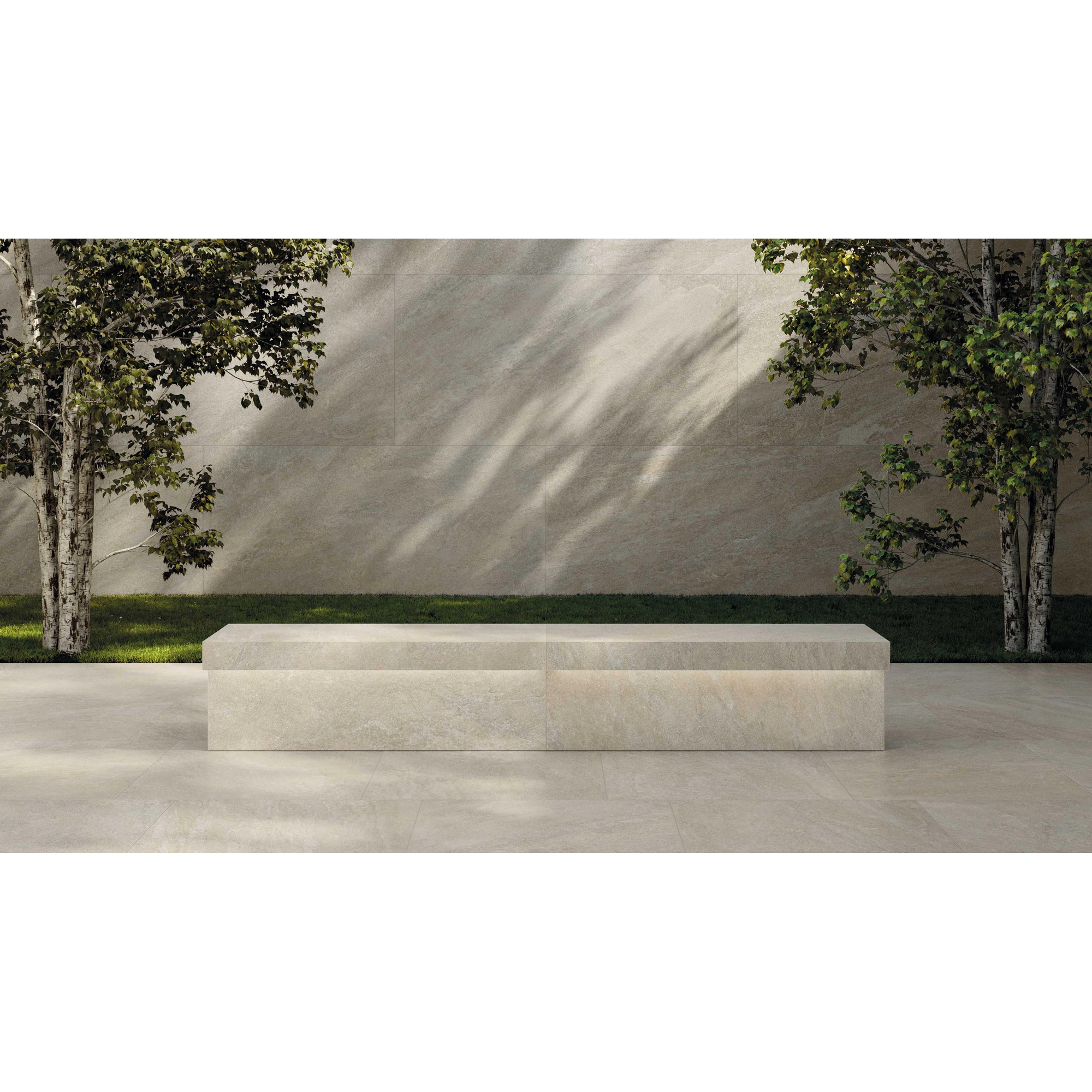 Le grand format de 120x120 cm réduit le nombre de joints et offre ainsi un aspect épuré, presque digne d’un hôtel. Surtout dans les salles de bains de taille moyenne à grande, les cuisines de vie ou les espaces ouverts, ce format renforce la sensation d’espace. Les bords rectifiés (à arête droite) permettent des largeurs de joint étroites, ce qui rend l’ensemble encore plus uniforme et facilite l’entretien. Au sol, vous créez ainsi un tapis de pierre calme, au mur une surface impressionnante, presque sans joint. C’est particulièrement adapté si vous souhaitez par exemple réaliser une douche à l’italienne, un mur de fond derrière une baignoire autoportante ou un sol continu de la salle de bains à la chambre.