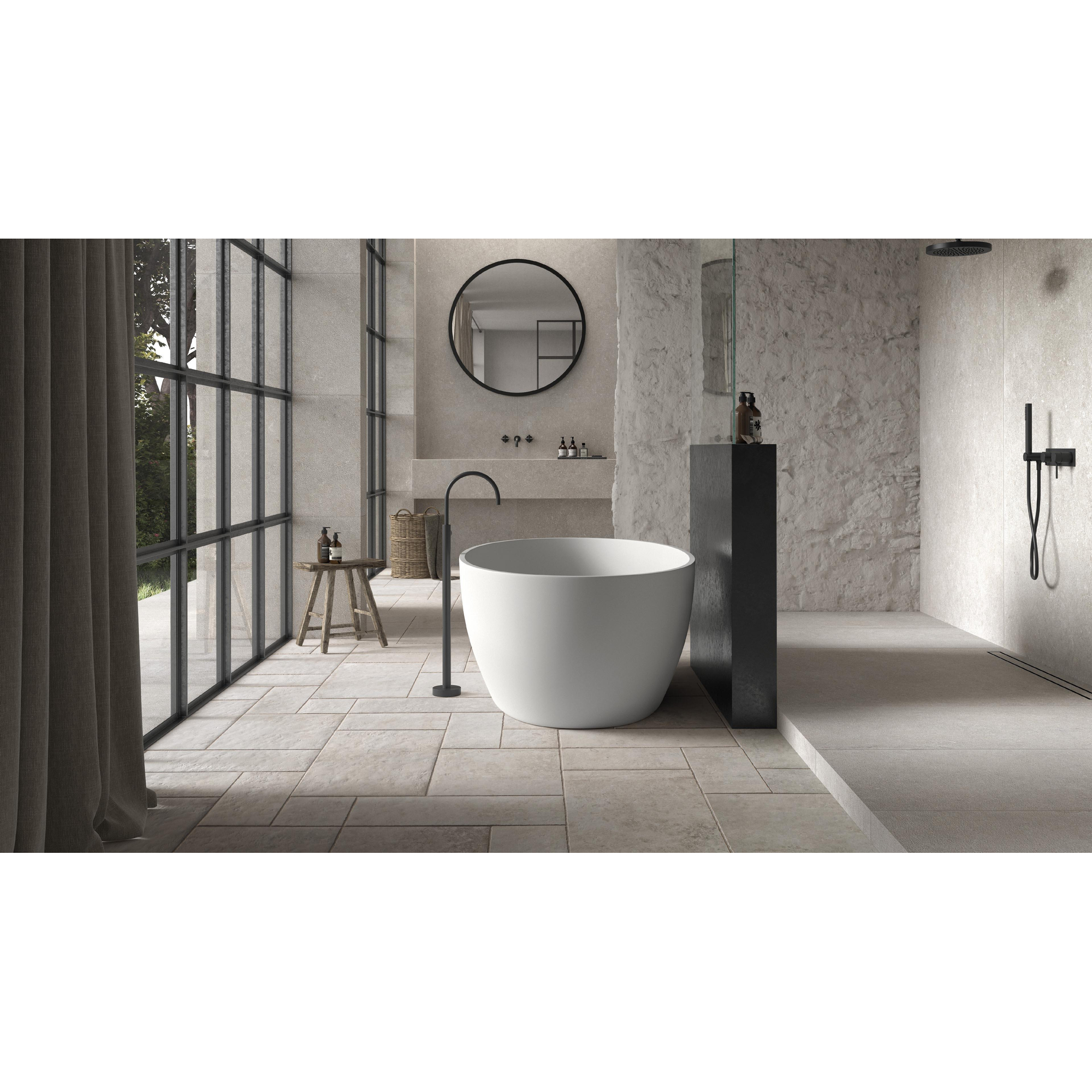 Ce carrelage de sol élégant est une base idéale pour une salle de bains ou des toilettes calmes et luxueuses, mais il s’intègre tout aussi bien dans un espace de vie, un hall ou une cuisine. Grâce au format allongé de 40x80 cm, vous créez facilement une atmosphère moderne et spacieuse, tandis que l’aspect pierre naturelle mat apporte une ambiance chaleureuse et intemporelle. Le carrelage convient à la fois comme carrelage de sol et de mur, ce qui vous permet de réaliser un ensemble magnifique avec un seul type de carrelage : de la douche à l’italienne au sol et au mur d’accent. Avec la valeur antidérapante R10, c’est un choix judicieux pour les pièces où le sol peut être mouillé et où vous souhaitez marcher en toute sécurité et confortablement, même pieds nus. Si vous recherchez un carrelage durable et facile d’entretien qui offre la sensation de la pierre naturelle sans sa fragilité, ce produit correspond parfaitement à vos souhaits pour la salle de bains et l’habitat.