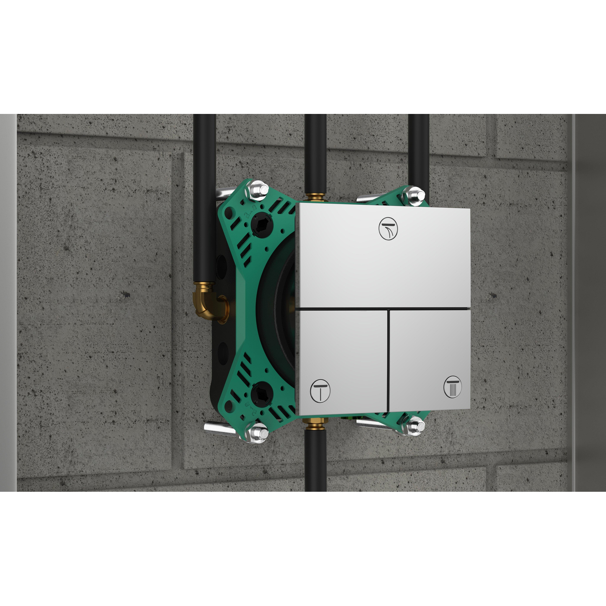 Transformez votre salle de bains avec une combinaison raffinée d'élégance et de facilité d'utilisation. Ce système encastré vous permet de passer aisément entre différentes fonctions de douche, rendant votre expérience quotidienne de douche beaucoup plus agréable. Le design minimaliste et ultra-fin crée un effet d'espace et donne l'impression que le mitigeur flotte presque sans poids contre le mur. Grâce à la commande intuitive avec de grands boutons-poussoirs, vous changez facilement entre un maximum de trois fonctions, même avec les mains mouillées ou savonnées. Ainsi, vous profitez non seulement d'une apparence élégante, mais aussi d'une technique intelligente et fiable qui élève votre salle de bains à un niveau supérieur.