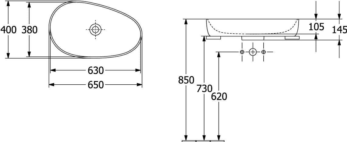 Villeroy & Boch Antao lavabo à poser 65x40cm asymétrique amande C+