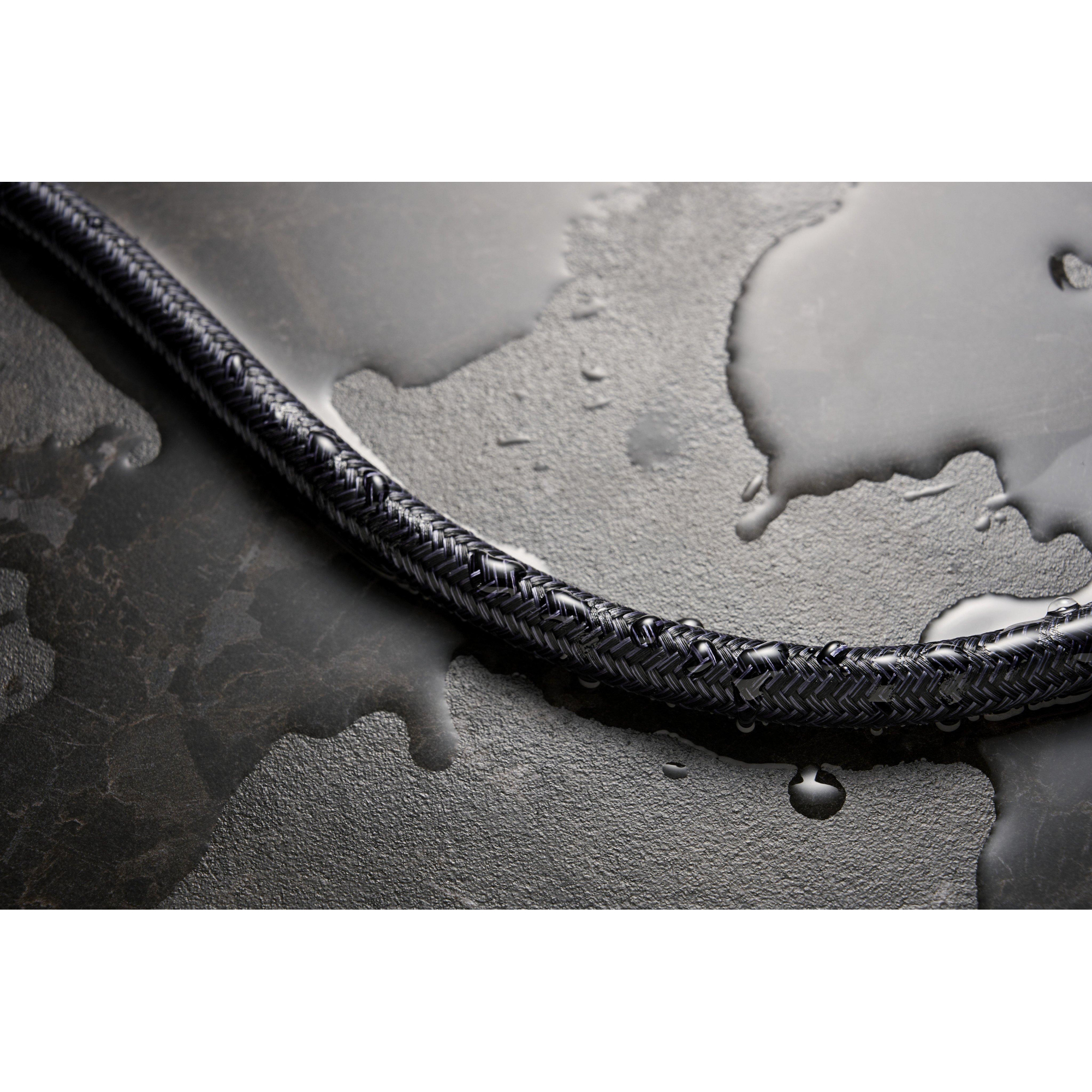 La finition textile mat noir donne à ce flexible de douche une apparence intemporelle et élégante qui s'harmonise aisément avec différents styles de salle de bains. Le tressage unique de fils multicolores crée un motif subtil et raffiné qui non seulement est beau à voir, mais s'accorde aussi avec d'autres accessoires et robinets mat noir. Ainsi, vous créez un ensemble cohérent et moderne. Par la combinaison du design et de la couleur, votre salle de bains devient un lieu dont vous êtes fier, avec un flexible de douche qui ajoute cette petite touche de classe en plus.