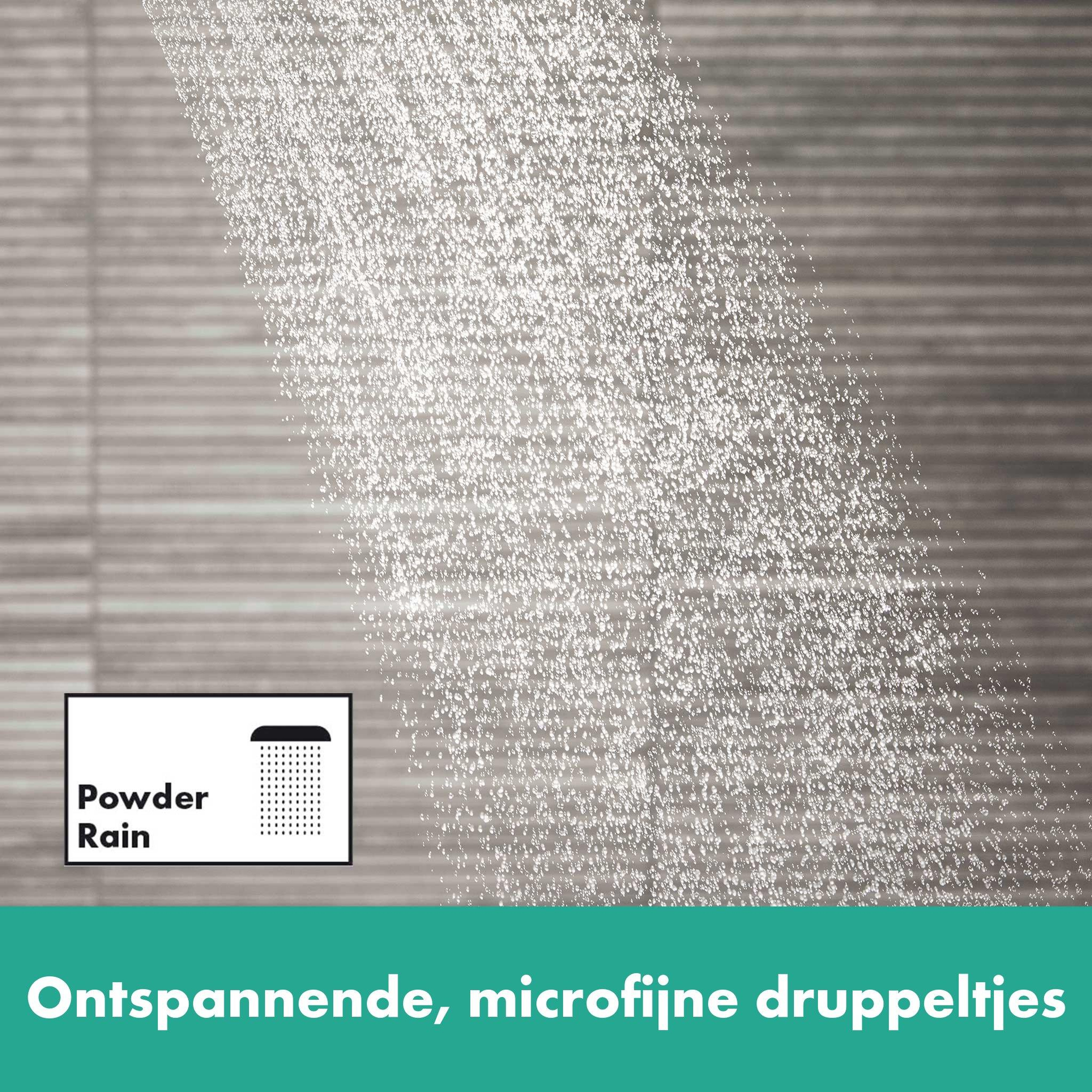 Avec le type de jet unique PowderRain, vous êtes enveloppé par des milliers de micro-gouttes d'eau qui offrent une expérience de douche douce et revigorante. Grâce à la technologie EcoSmart, la consommation d'eau est limitée à un maximum de 8 litres par minute sans compromettre la pression de l'eau. Cela rend la douchette non seulement agréable à utiliser, mais aussi écologique et économique. La forme ergonomique tient bien en main et la crépine rinçable empêche la saleté de pénétrer dans la pomme de douche, assurant un fonctionnement fiable et un entretien facile.