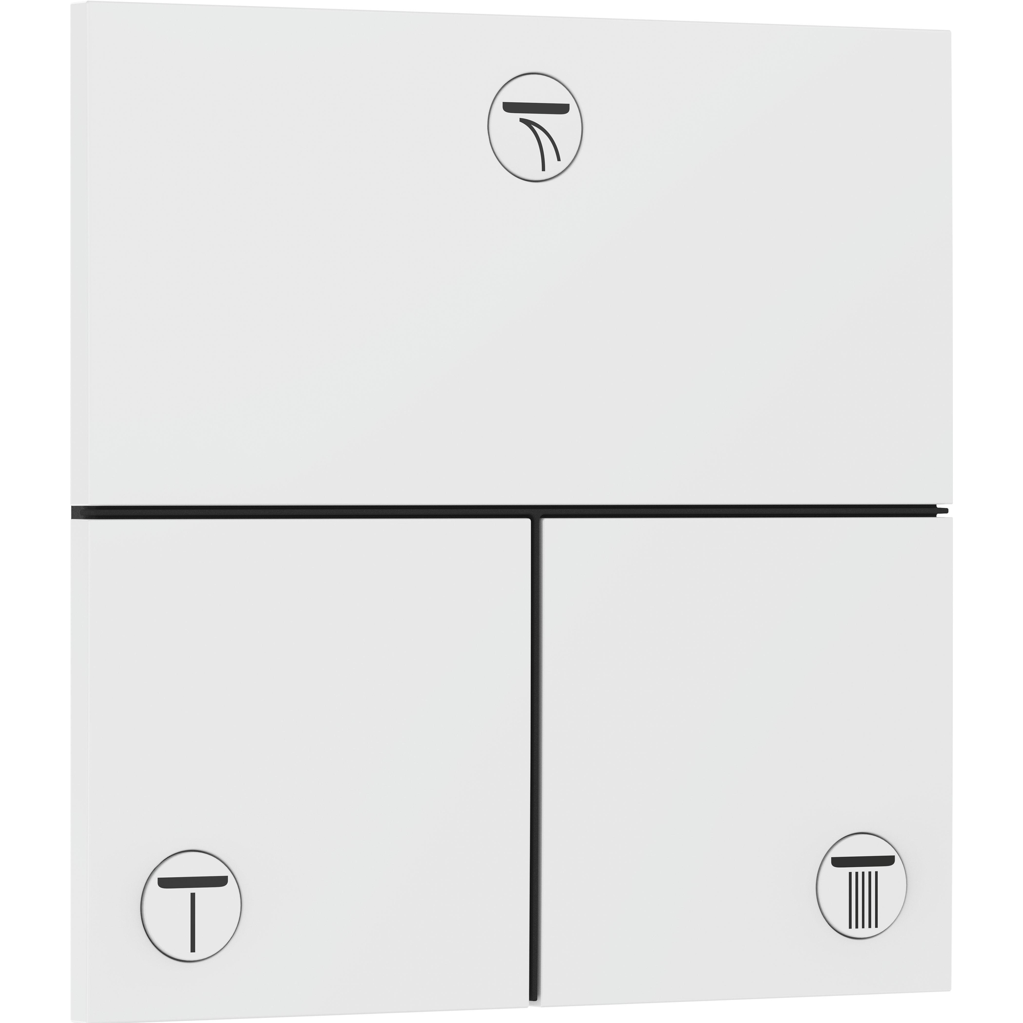 La surface blanche mate et le design ultra-plat font de ce mitigeur encastré un véritable point fort. La discrète ombre autour de la rosace murale donne l'impression que le mitigeur est presque en apesanteur, créant une atmosphère raffinée et moderne. Grâce aux symboles clairs sur les boutons, vous savez toujours exactement quelle fonction vous activez, sans avoir à chercher. Ce design s'intègre parfaitement aux salles de bains contemporaines et donne à votre espace un aspect frais et soigné qui dure des années.