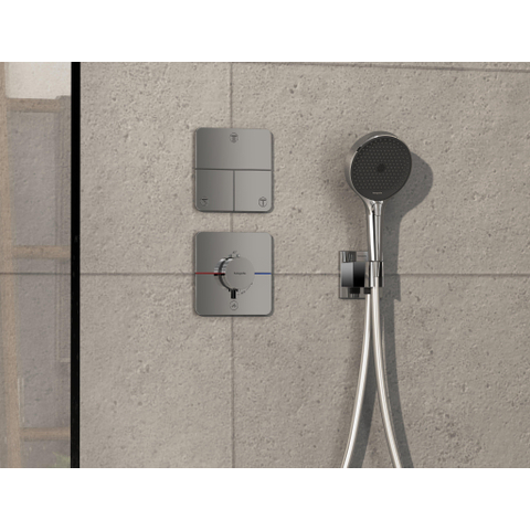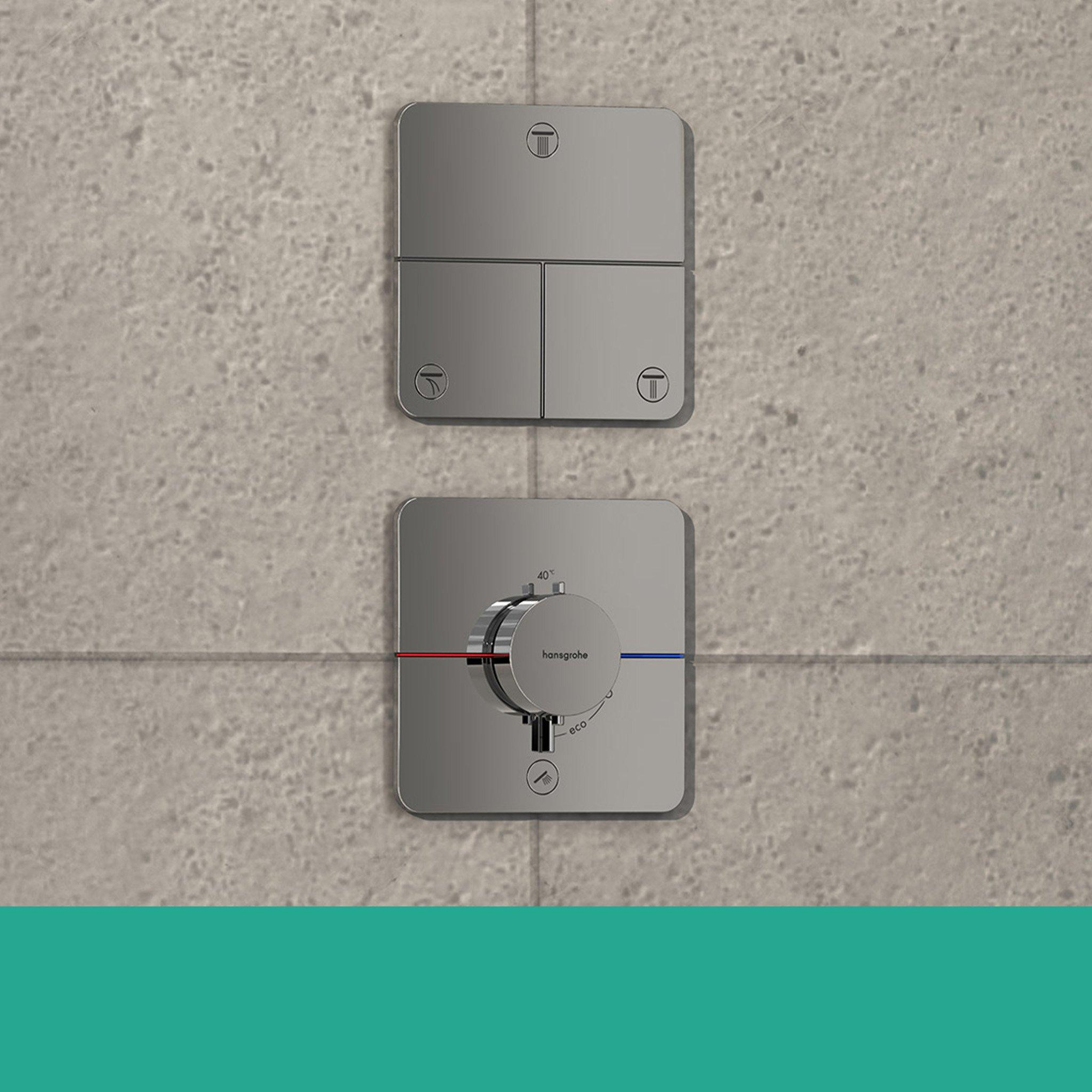 La commande de ce mitigeur thermostatique est particulièrement conviviale. Avec le bouton Select, vous ouvrez ou fermez l’eau d’une simple pression, tandis que la poignée inférieure permet un réglage précis du débit d’eau. Le thermostat maintient la température constante, même en cas de variations de pression d’eau, pour que vous puissiez toujours prendre une douche confortable. Grâce à la sortie supplémentaire, il est possible d’étendre le système et de commander plusieurs fonctions, offrant une flexibilité pour différents souhaits de douche. Le montage encastré assure en outre un ensemble ordonné et épuré, avec la pièce encastrable iBox universal 2 nécessaire facilement intégrable.