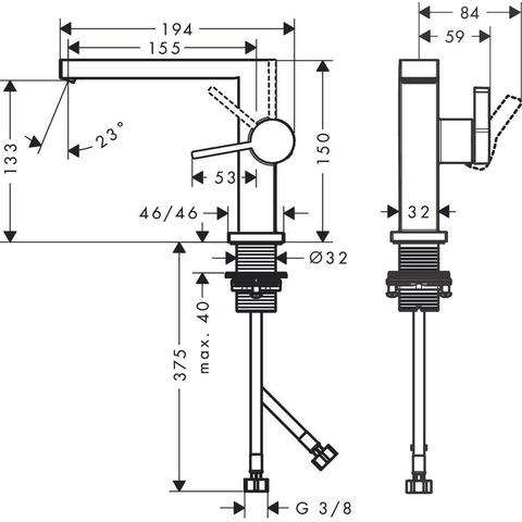 - ComfortZone de 110 mm pour un espace optimal entre robinet et lavabo