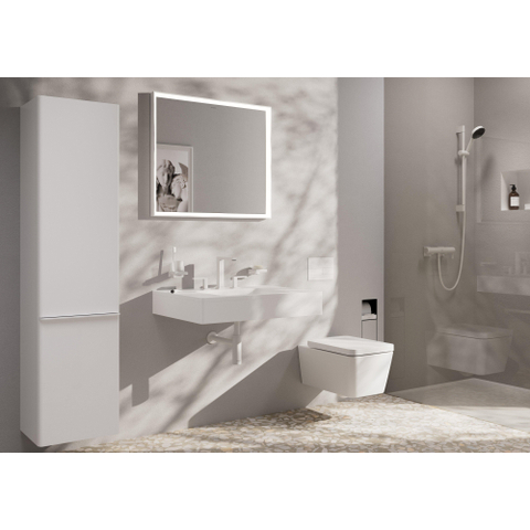 Ce robinet se distingue immédiatement par son design minimaliste et moderne. La surface blanche mate donne un aspect doux et luxueux qui s'intègre parfaitement dans une salle de bains contemporaine. Les lignes épurées et les formes géométriques créent un look calme et ordonné, faisant de votre lavabo un véritable point focal. L'absence de tirette visible grâce au bouchon de vidage à ouverture par pression rend l'ensemble encore plus épuré et raffiné. Vous profitez ainsi d'un robinet qui est non seulement fonctionnel, mais qui offre aussi une mise à jour élégante à votre salle de bains.