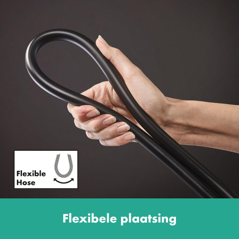 La barre coulissante est équipée d’un support de douche auto-bloquant que vous réglez facilement à la hauteur souhaitée d’une seule main. Ce système « easy slide » assure une flexibilité maximale pendant la douche. De plus, la barre coulissante peut être pivotée à gauche ou à droite grâce à un mécanisme de rotation, vous offrant ainsi plus de liberté de mouvement. Le flexible de douche de 160 cm est doté d’un support spécial qui empêche la torsion, garantissant que le flexible reste toujours souple et en parfaite forme. Vous profitez ainsi d’une expérience de douche sans souci et confortable.