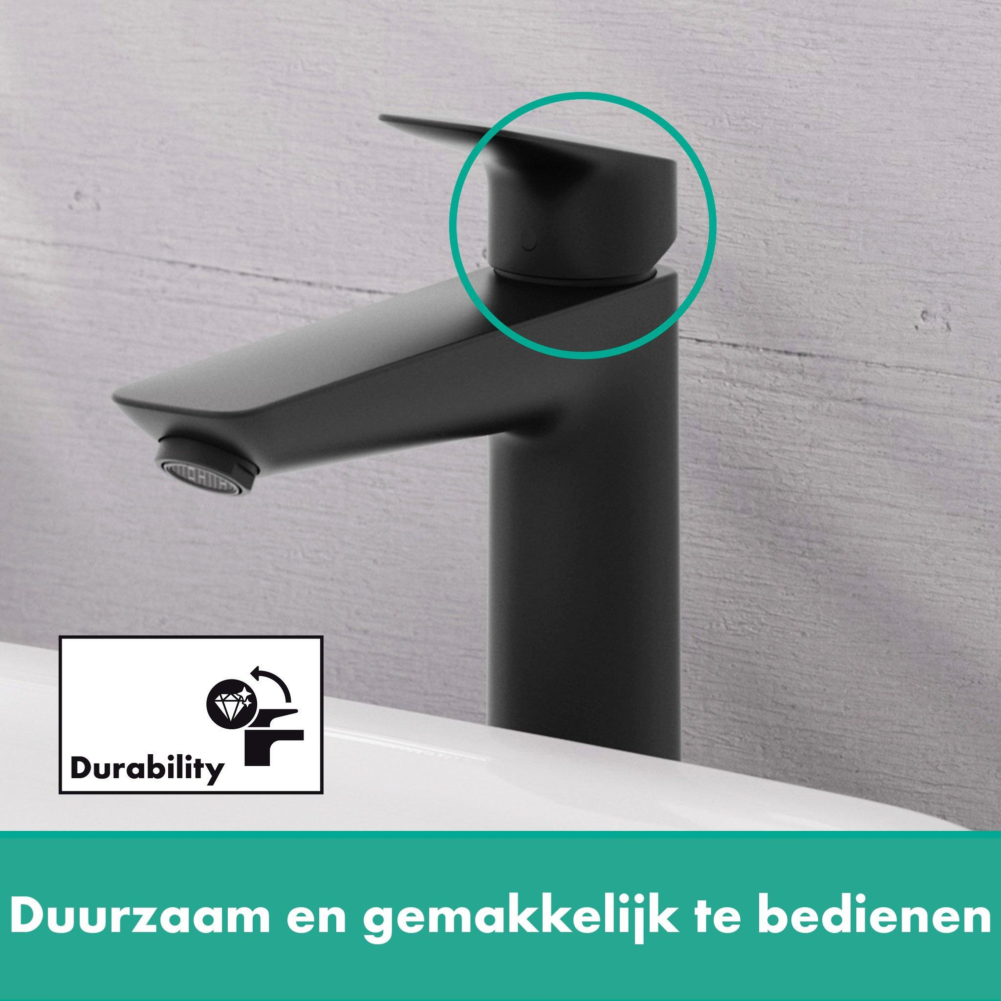 Ce mitigeur est fabriqué à partir de matériaux de haute qualité qui durent longtemps et résistent à une utilisation quotidienne. La cartouche céramique assure une commande fluide et empêche les fuites, contribuant à un fonctionnement fiable. De plus, le mitigeur est équipé d'un débit économiseur d'eau maximal de 5 litres par minute, ce qui est non seulement bon pour l'environnement, mais aussi pour votre portefeuille. Grâce à la finition durable, la couleur mate noire reste belle même après des années d'utilisation. Vous investissez ainsi dans un produit qui conserve sa qualité aujourd'hui, demain et après-demain.